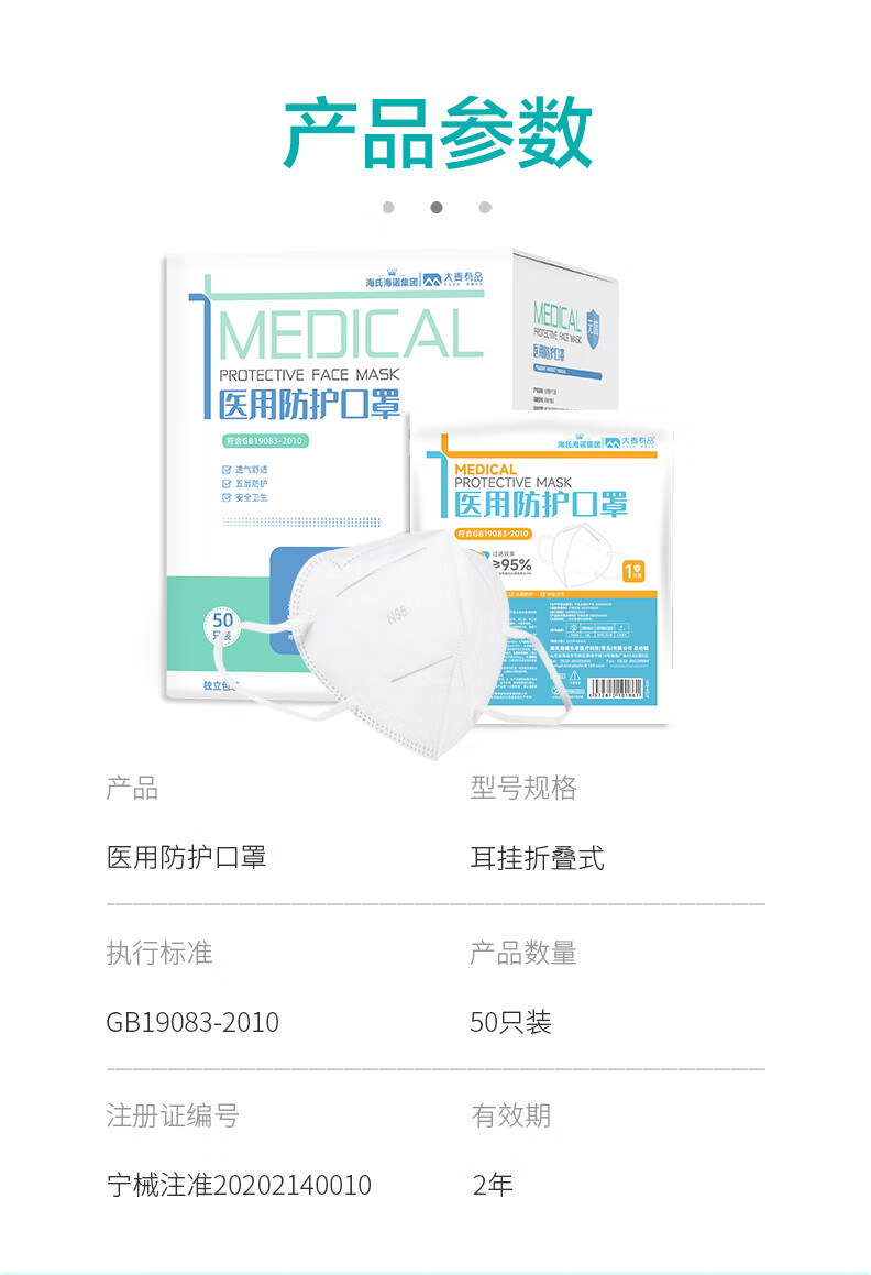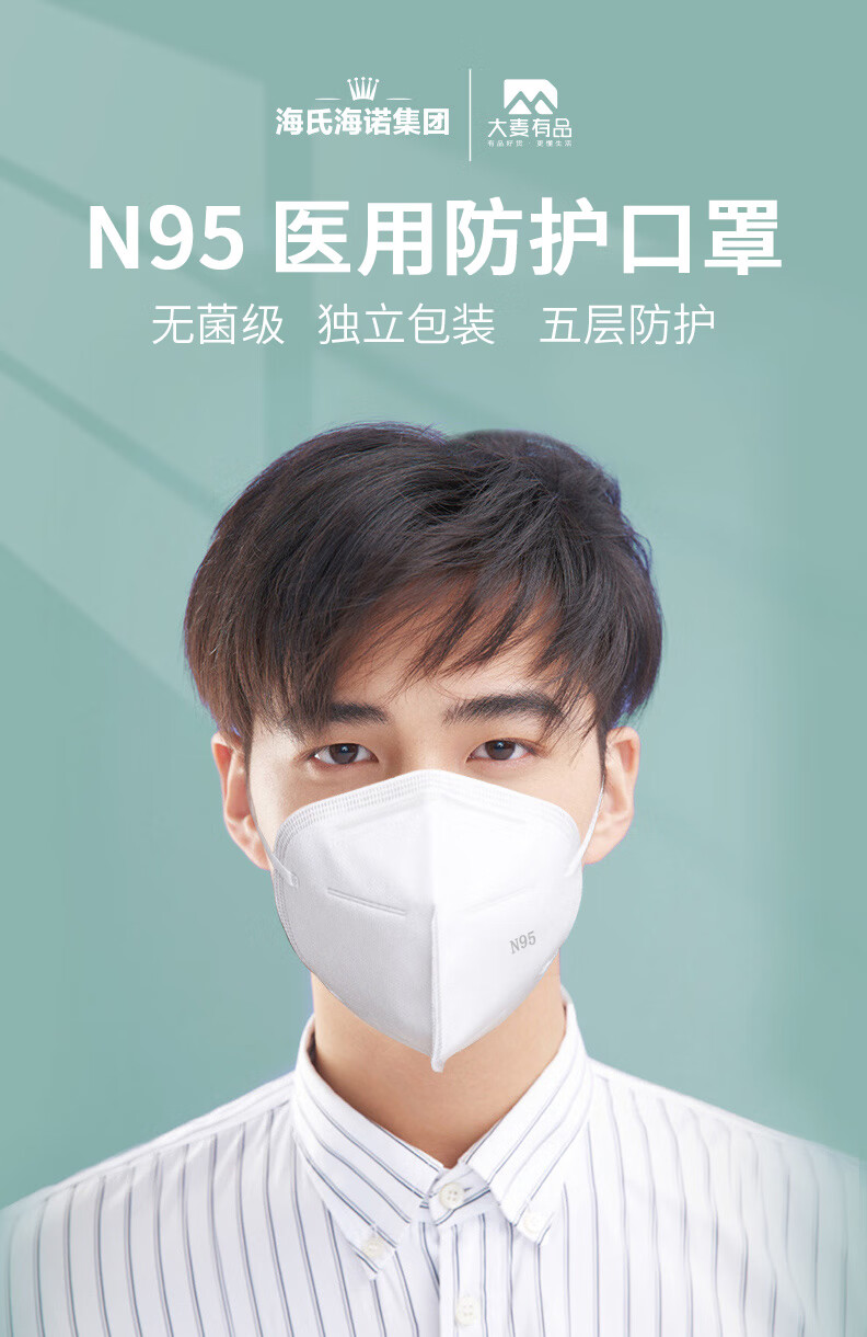 海氏海诺 乐享 A127N95挂耳折叠独立包装 白色。