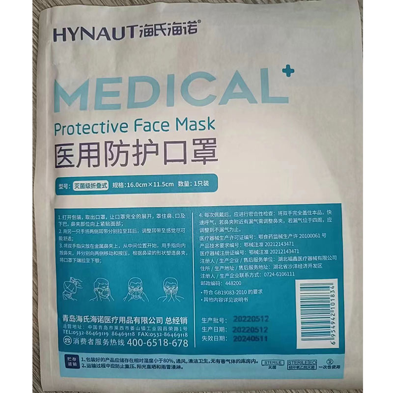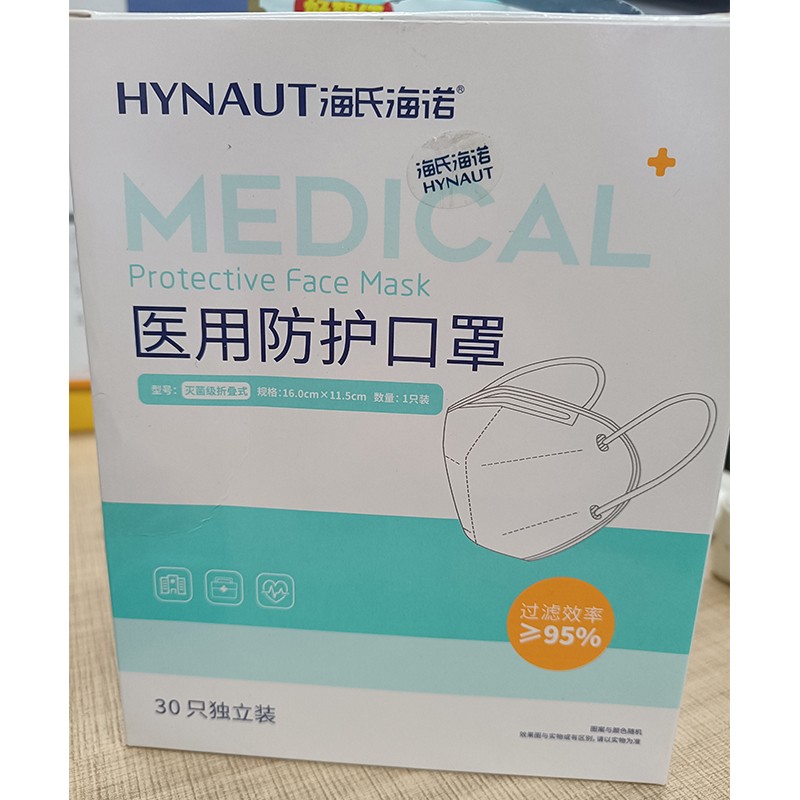 海氏海诺 N95 挂⽿折叠式成⼈款⿐梁带海绵条 医⽤防护⼝罩 白色。