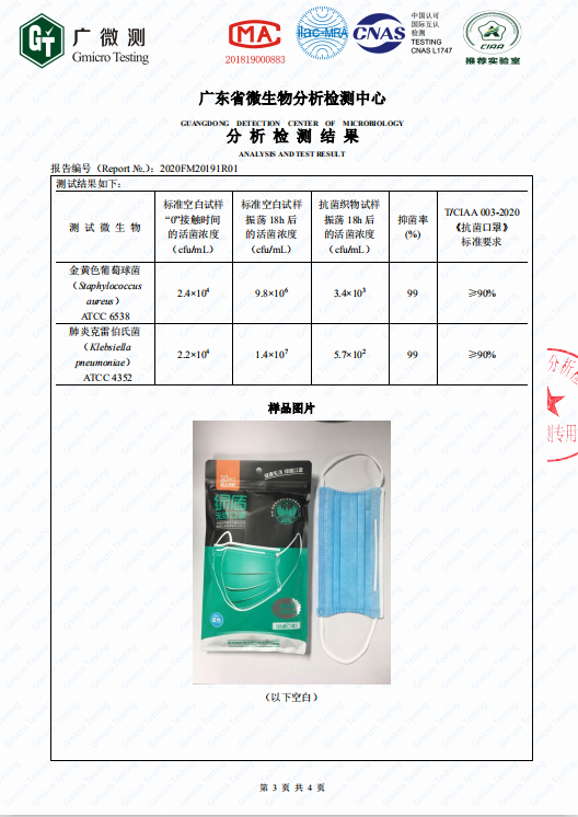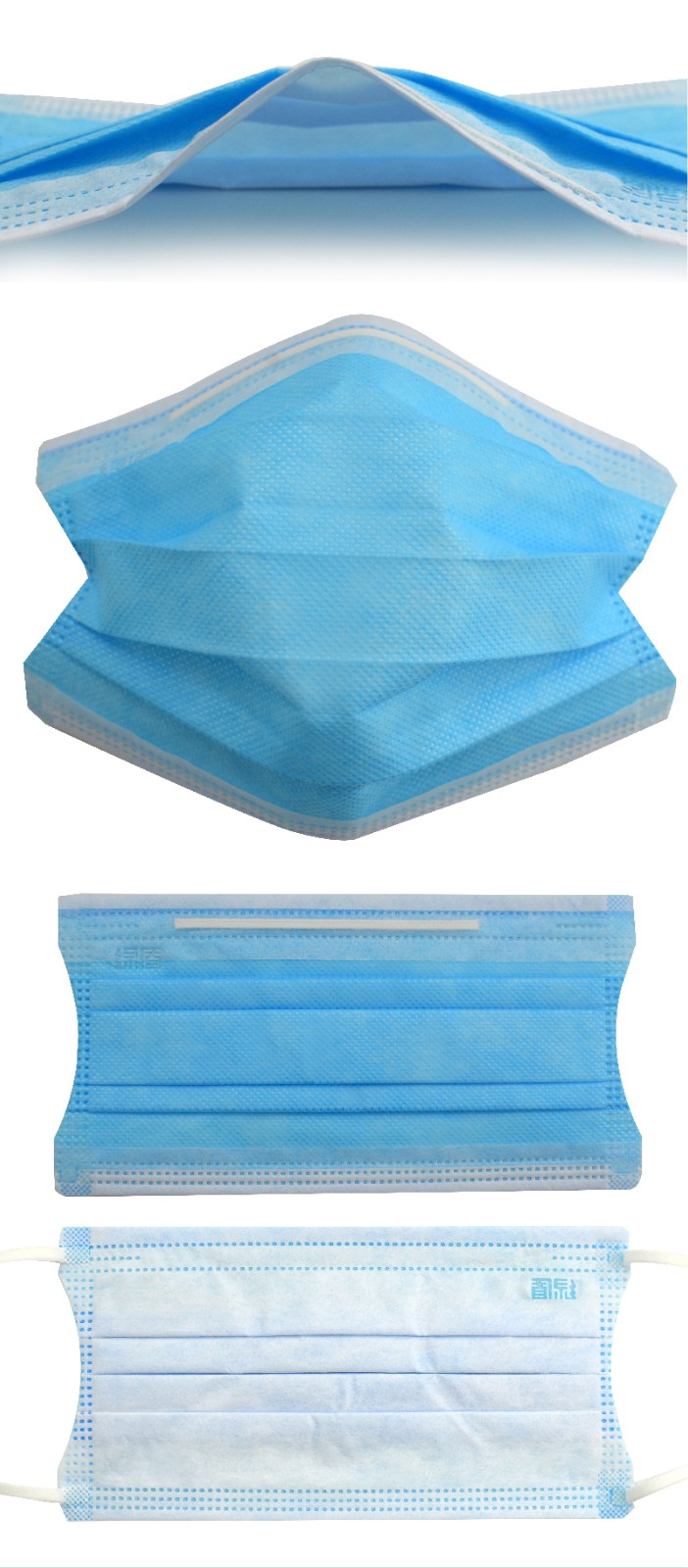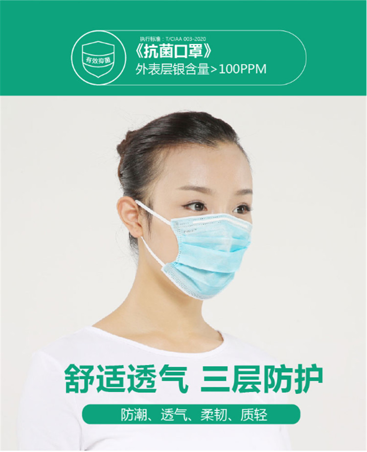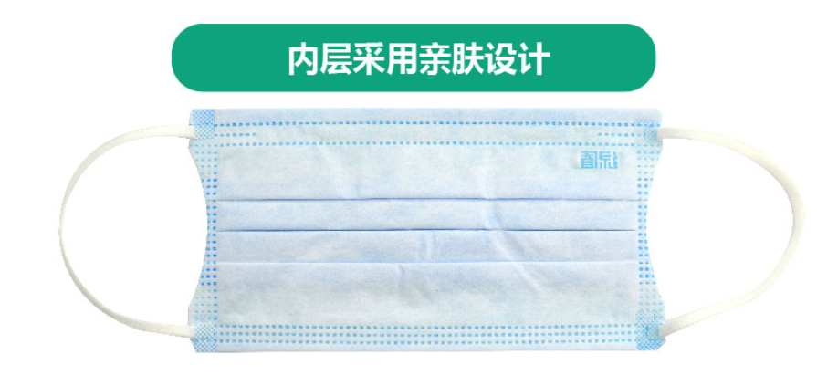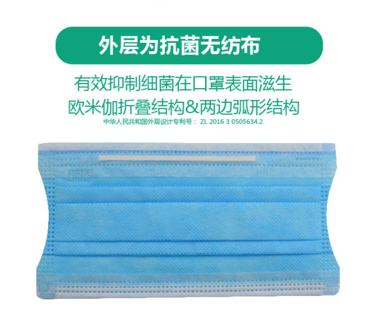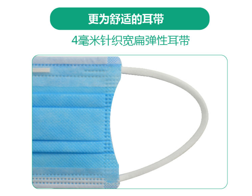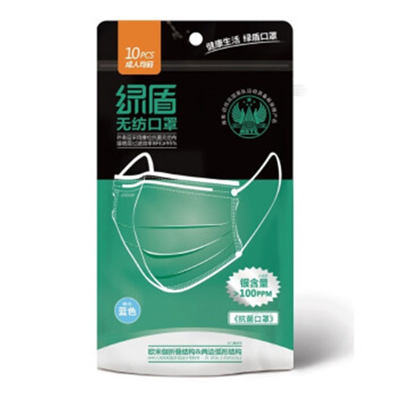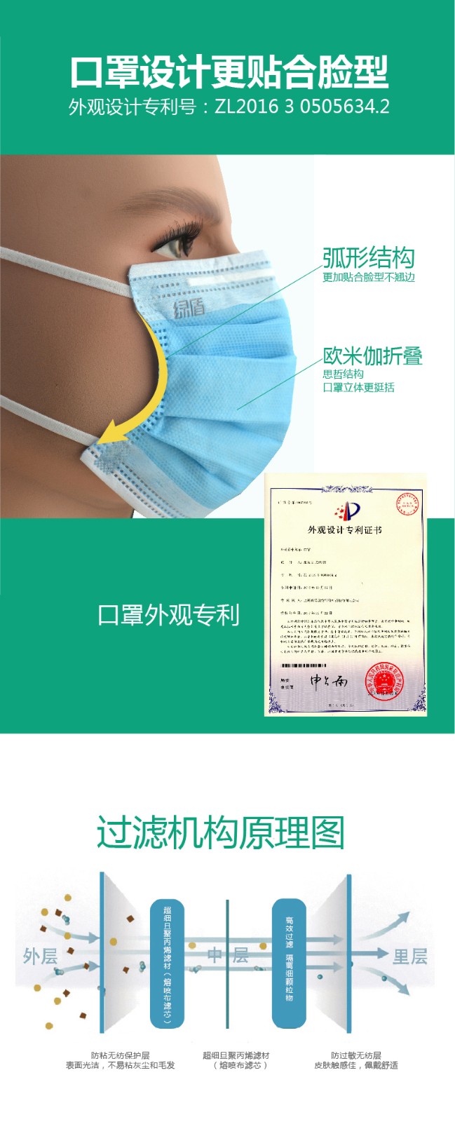 绿盾 1002 一次性无纺平面口罩 耳戴式 蓝色。