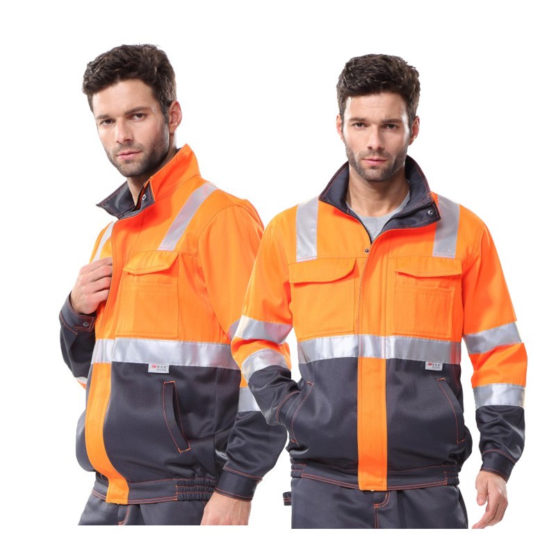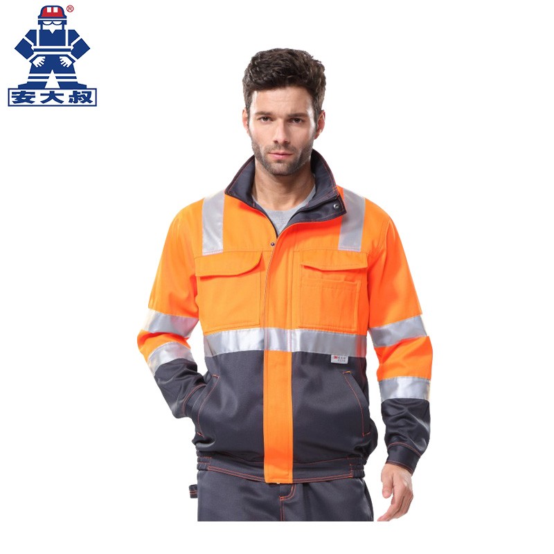 安大叔G472工作夹克反光警示夹克衫3M反光材料耐磨防水建筑交通警示服 荧光橙拼黑;