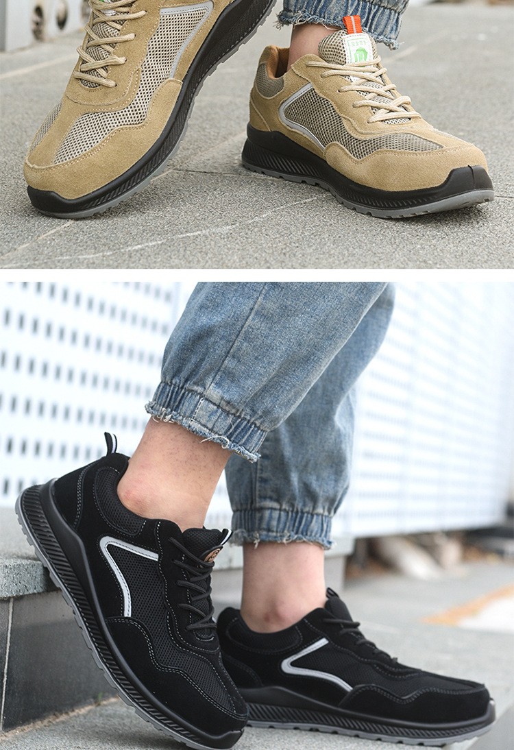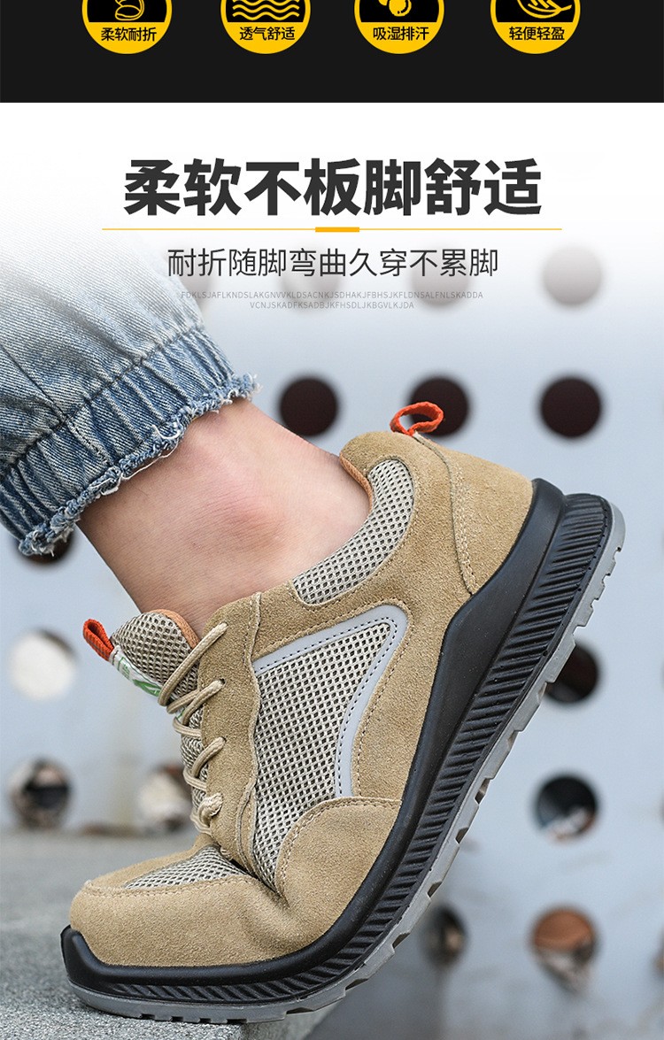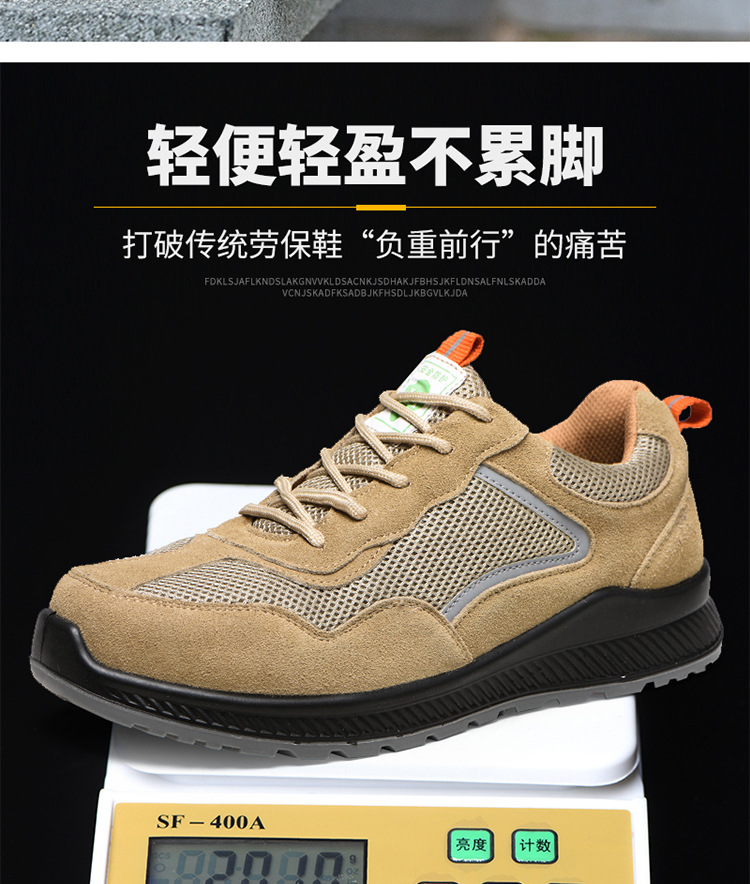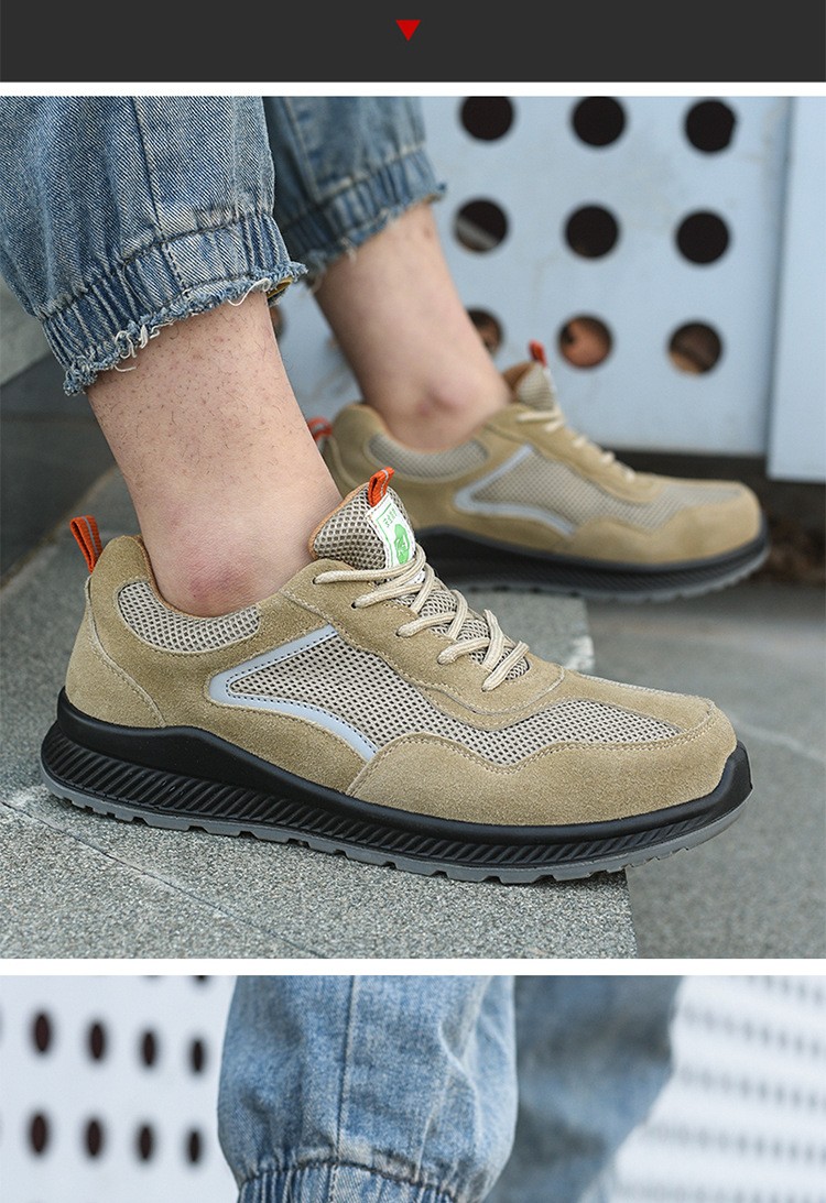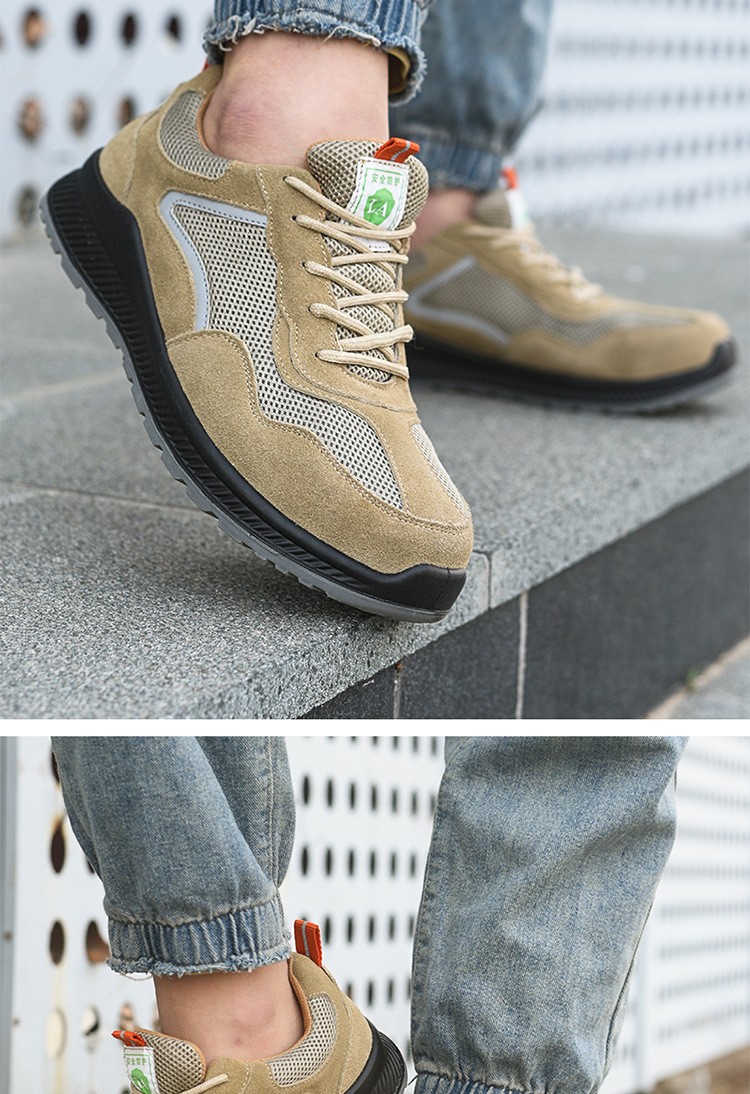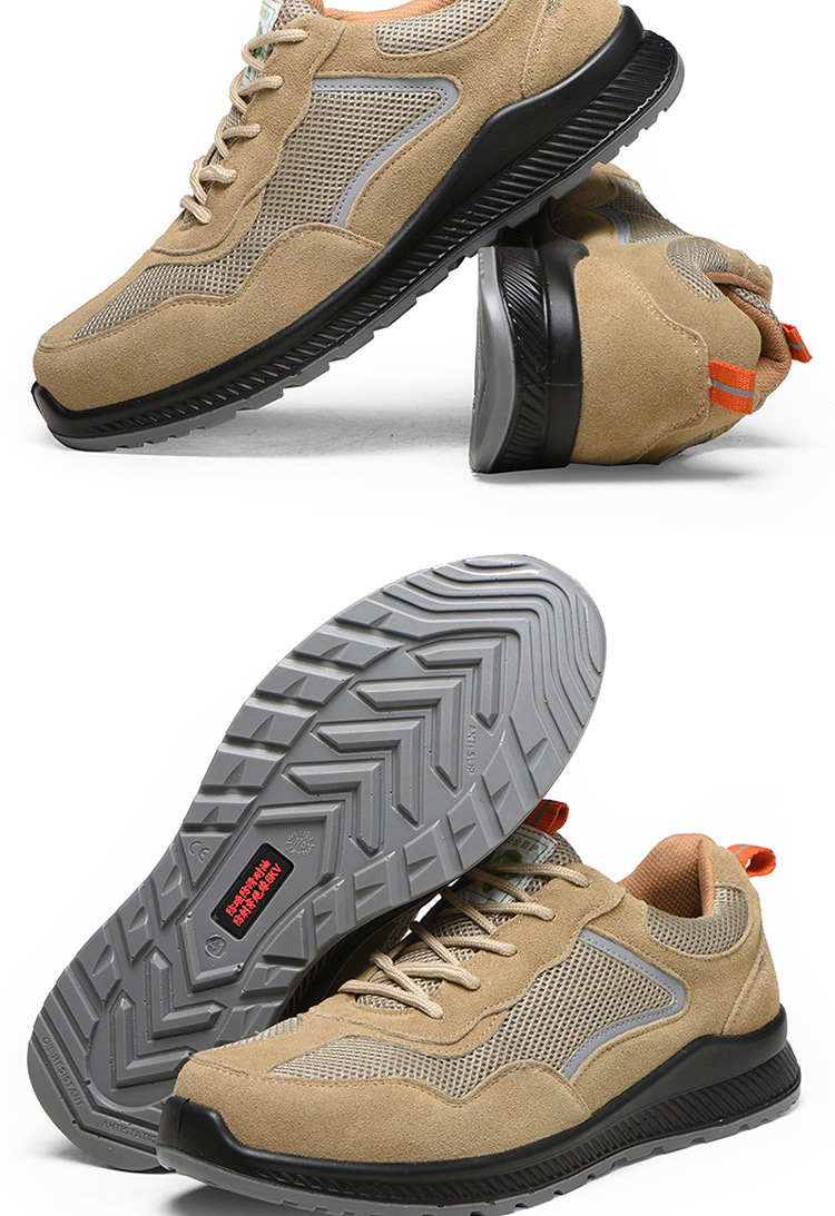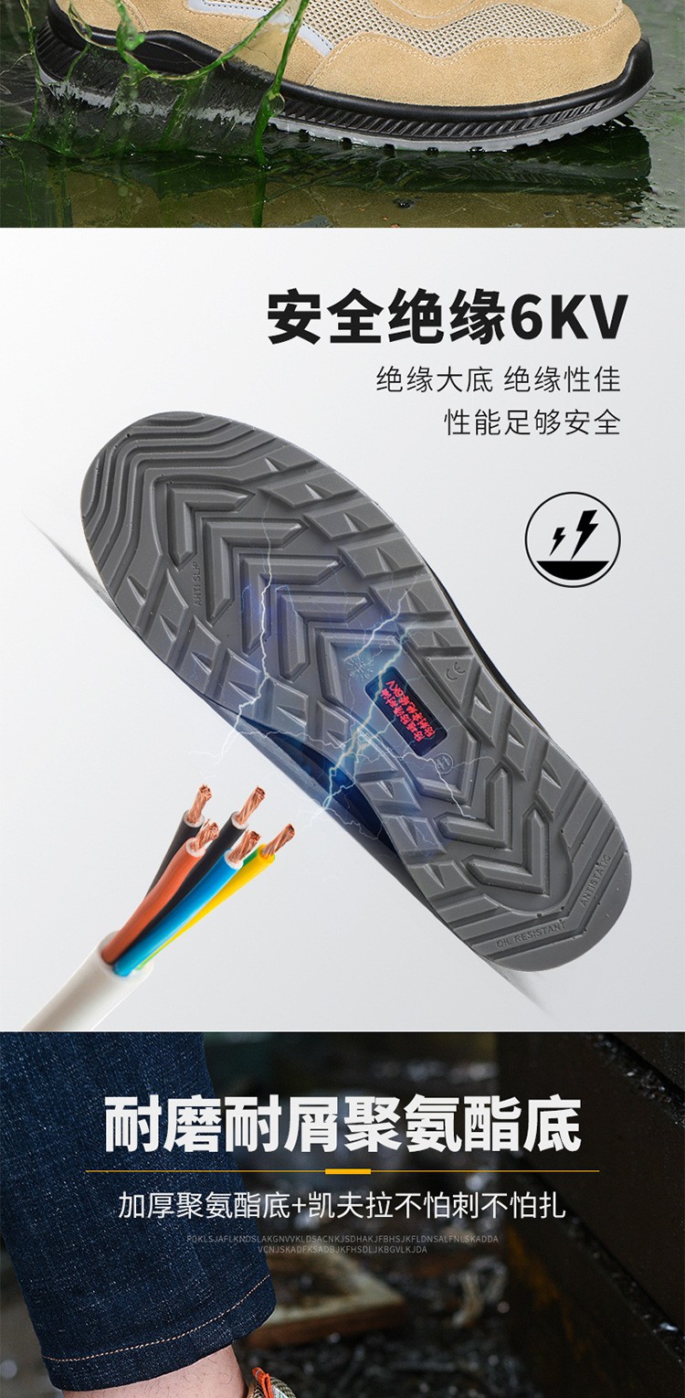 圭顿 3018 透气绝缘轻便凯夫拉钢包头劳保鞋 卡其色;