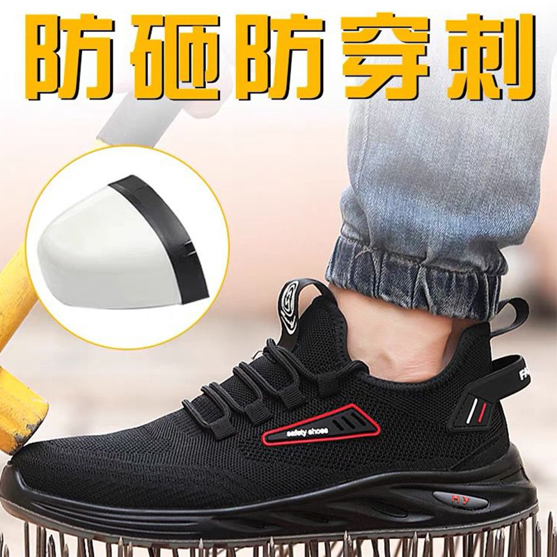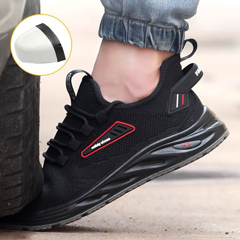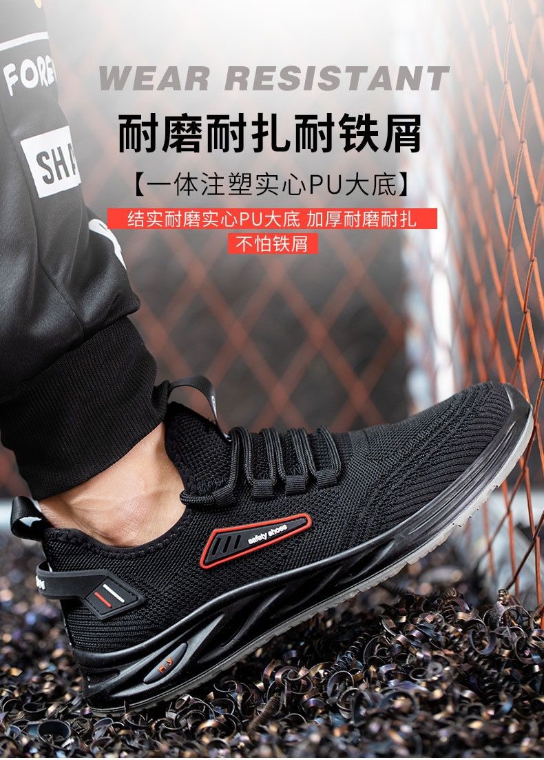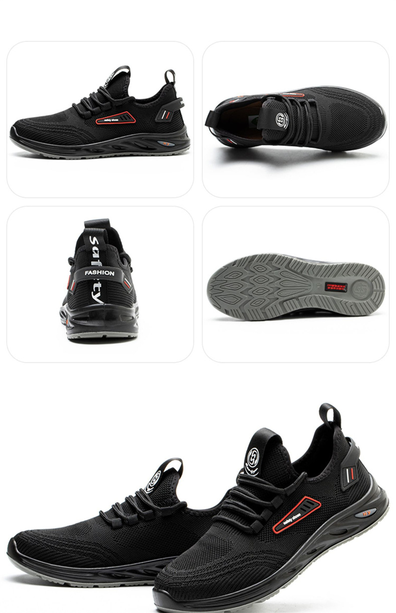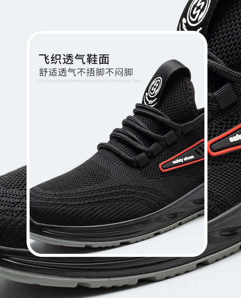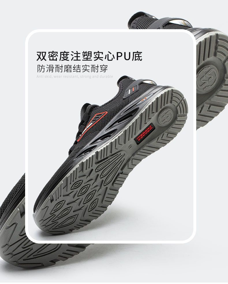 圭顿 8008 透气网面劳保安全鞋 黑色;