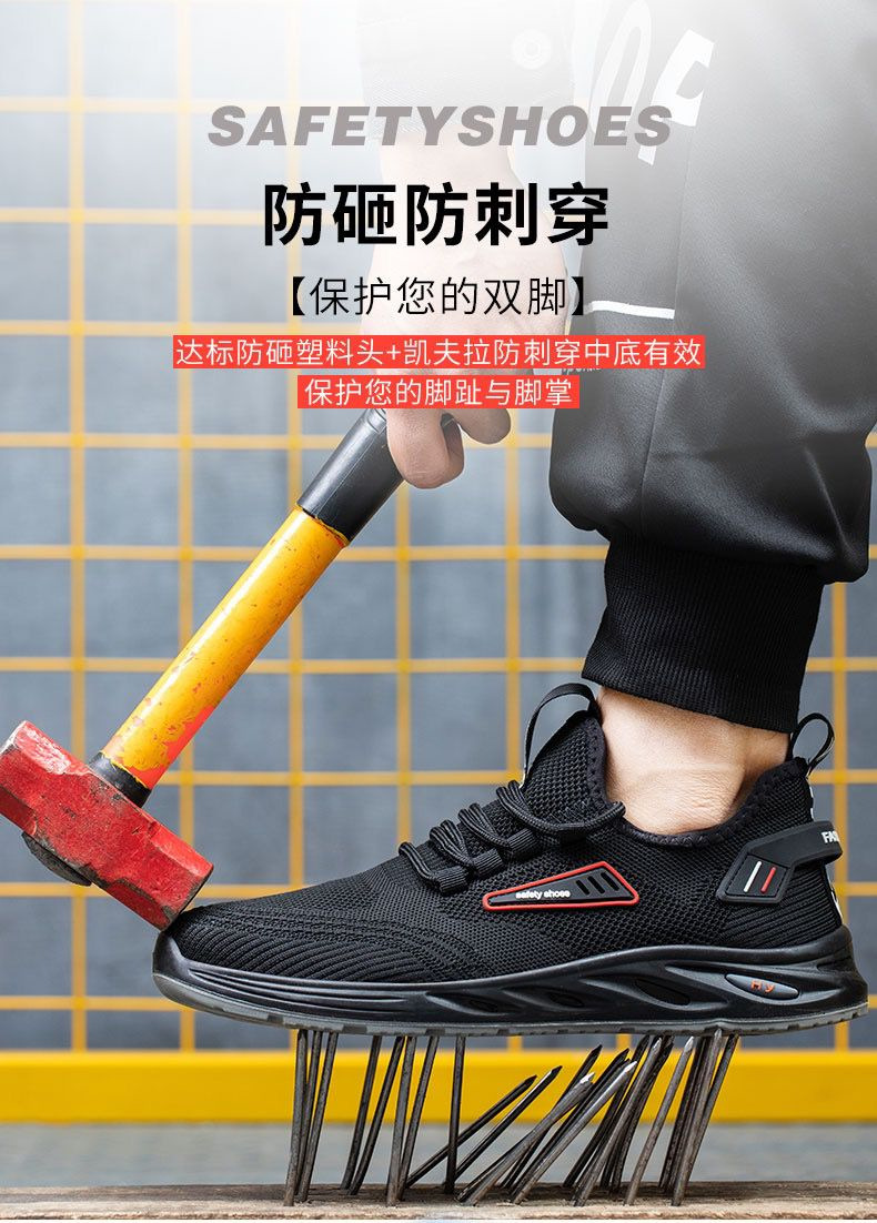 采用塑包头、凯夫拉中底,防砸防刺穿。