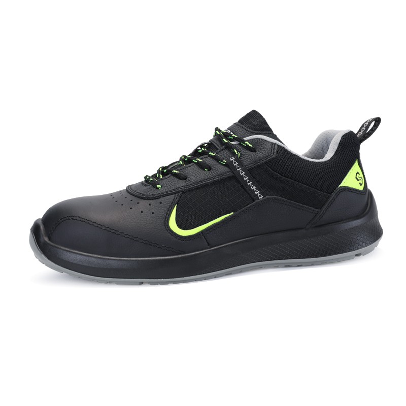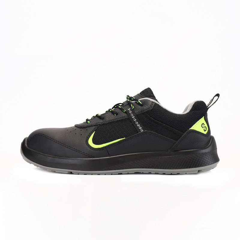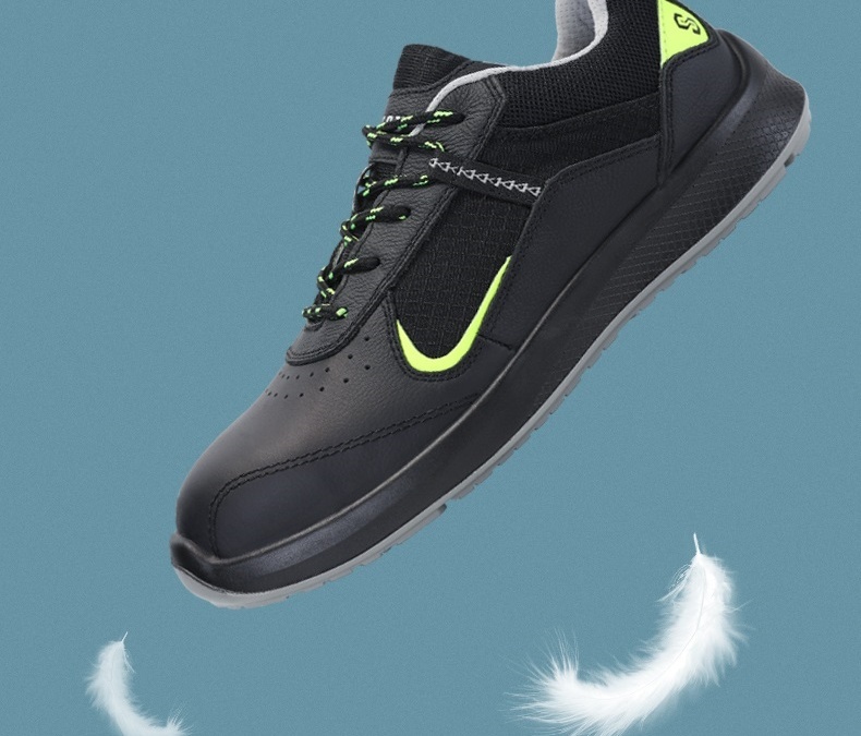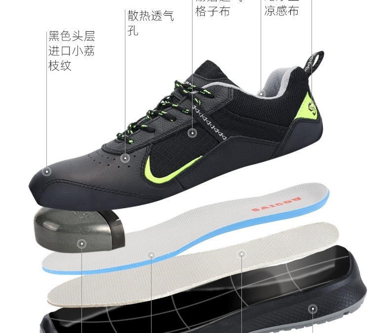 荔纹皮+冰丝网布(荧光绿)塑包头+凯夫拉+PU双色底;