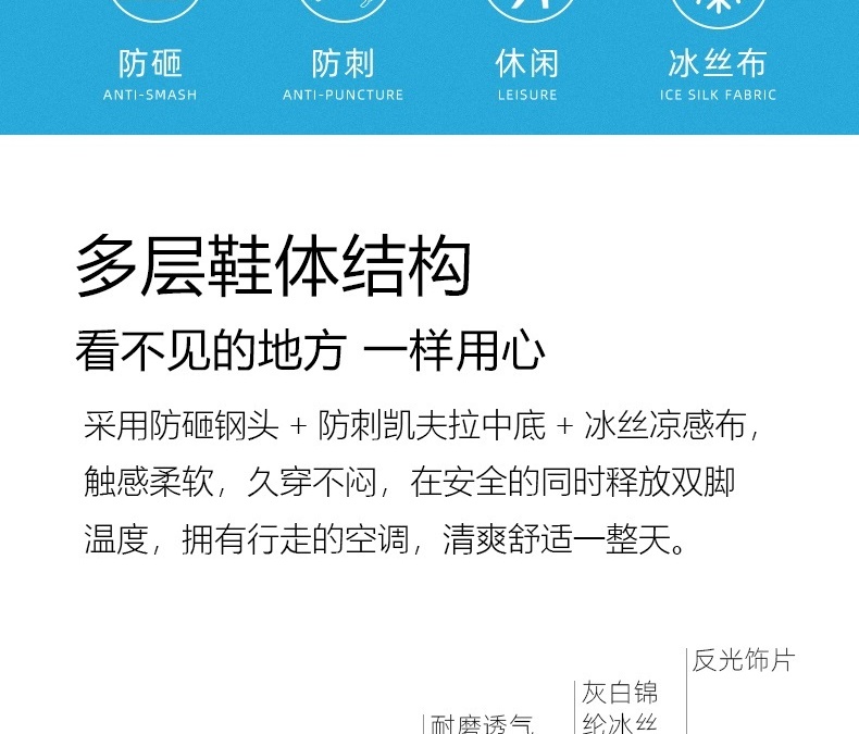 采用高级耐磨 EVA 鞋垫,柔软舒适,穿着包脚服贴吸汗透气。