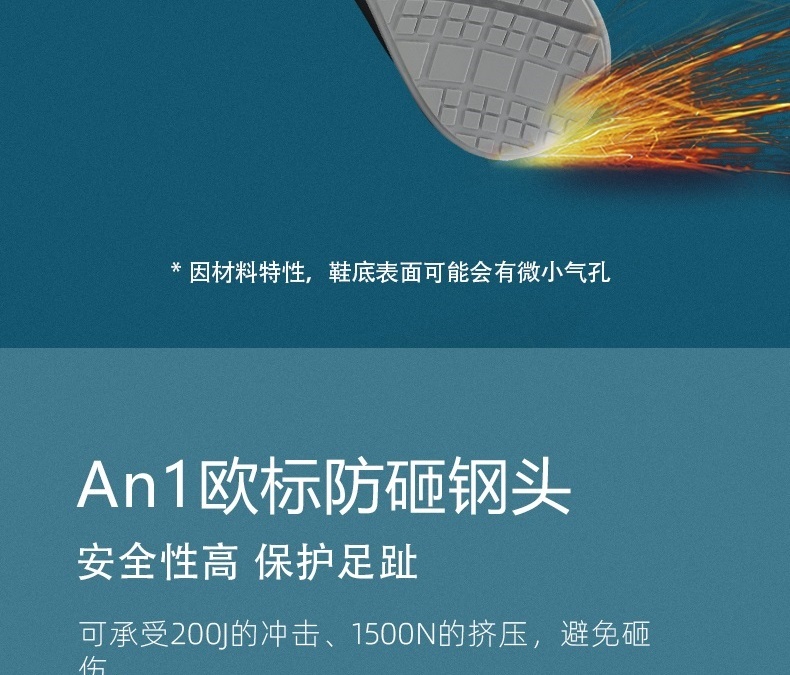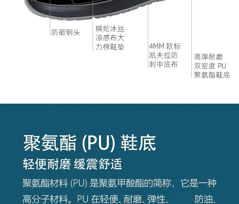 双密度 PU 连帮注塑+专业防滑大底设计;
