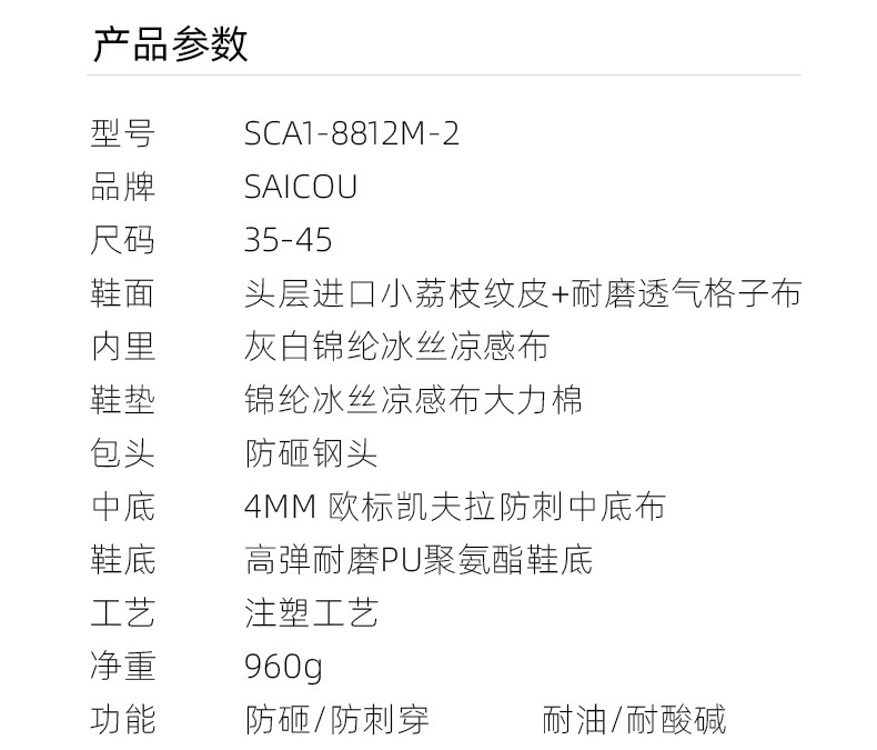 赛固 SCA2-8812M-2-4 防砸防刺安全鞋;