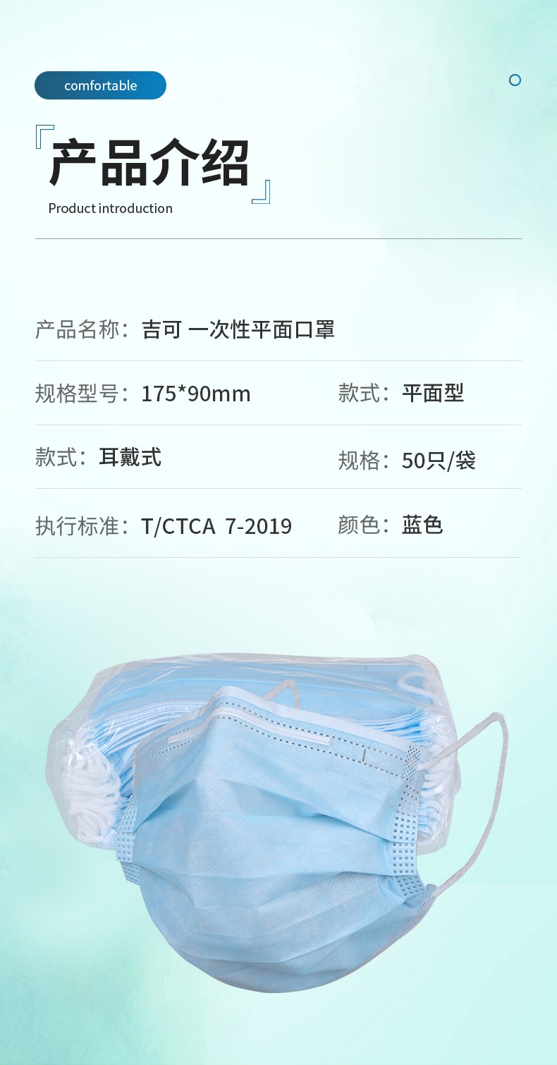 港凯/吉可 一次性口罩 蓝色;