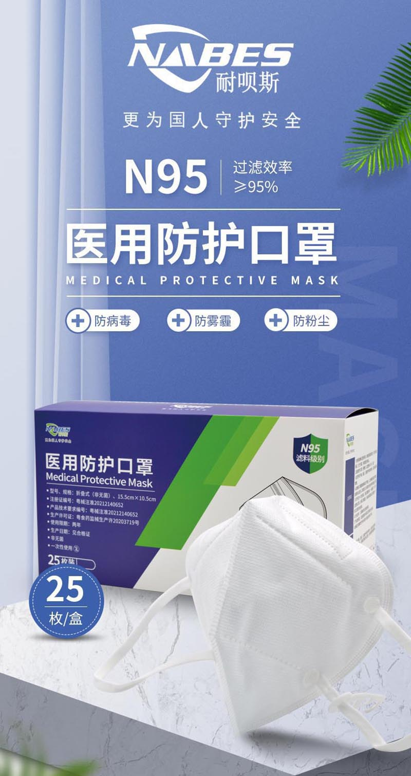 耐呗斯(NABES)YW01折叠耳带医用防护口罩(白);
