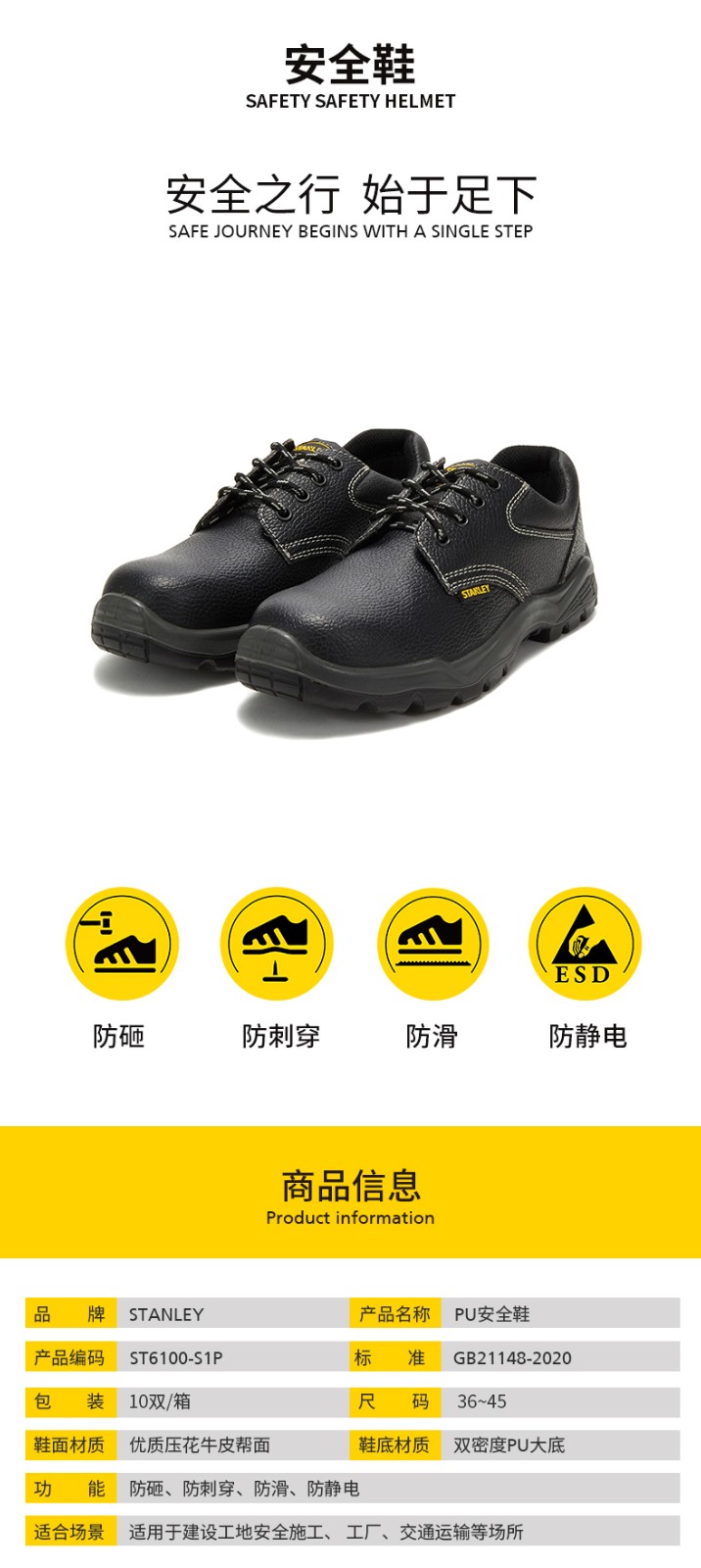 史丹利 ST6100-S1P 防砸防刺穿防滑防静电 安全鞋 黒色;