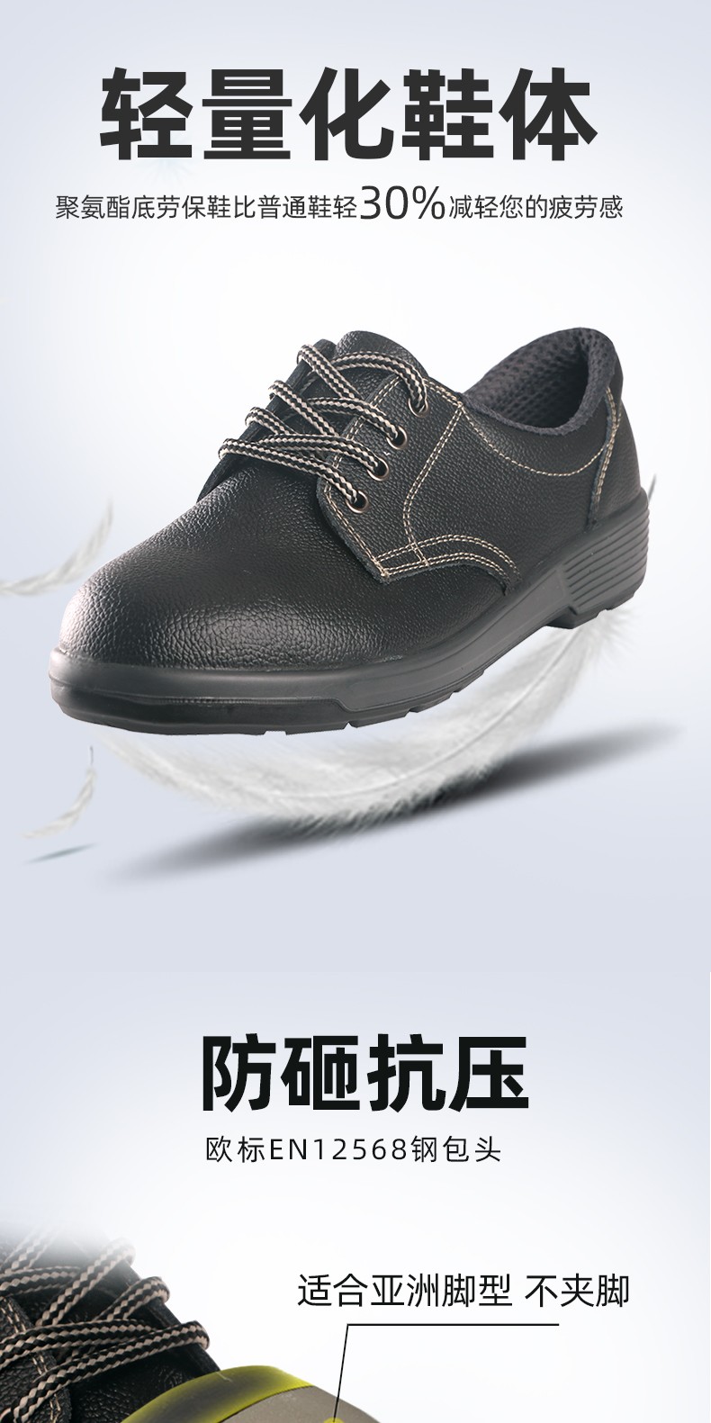 保护足趾,绝缘6kv,超防滑,日本技术,比普通聚氨脂底鞋轻70g-100g;