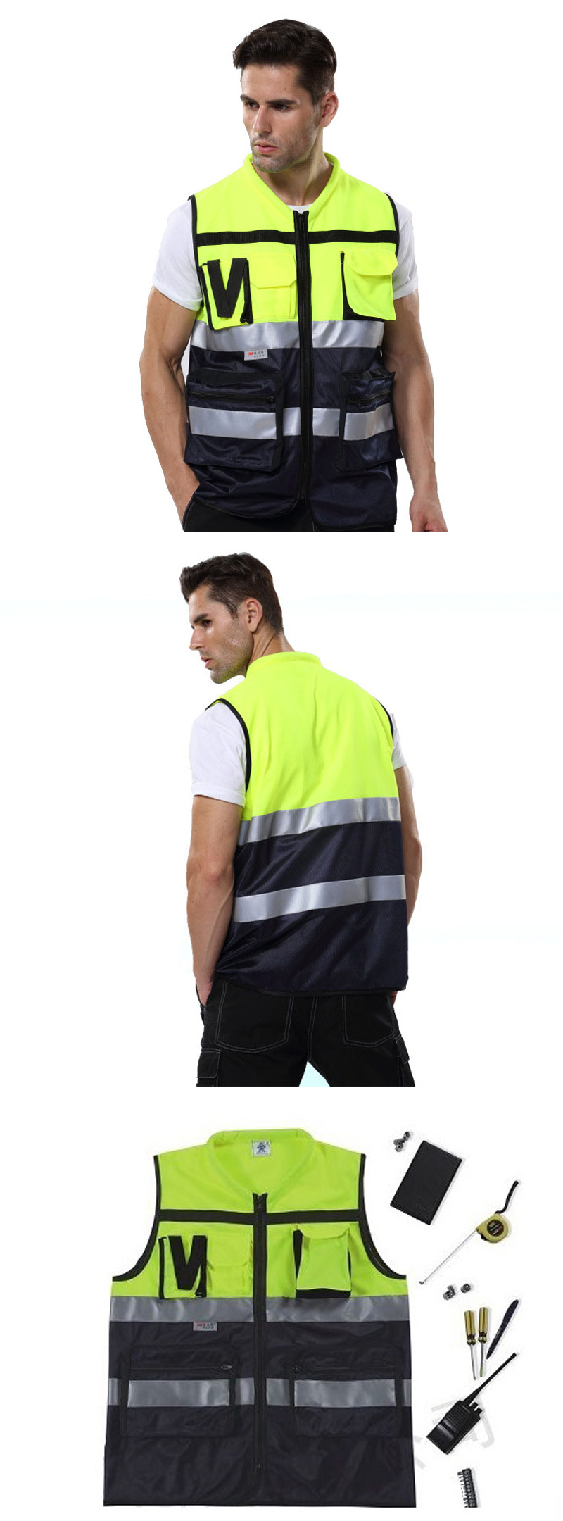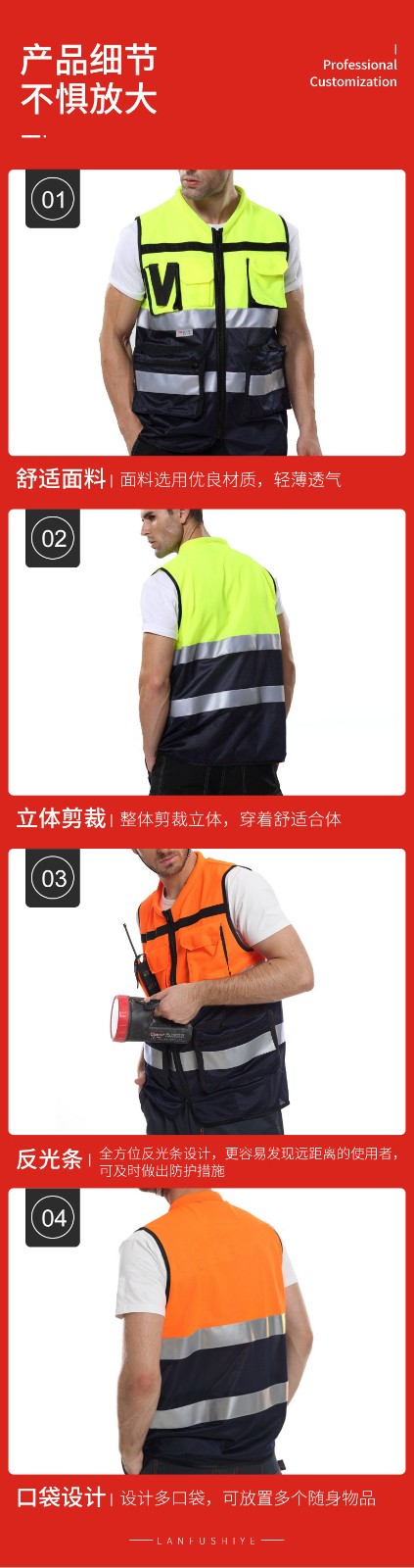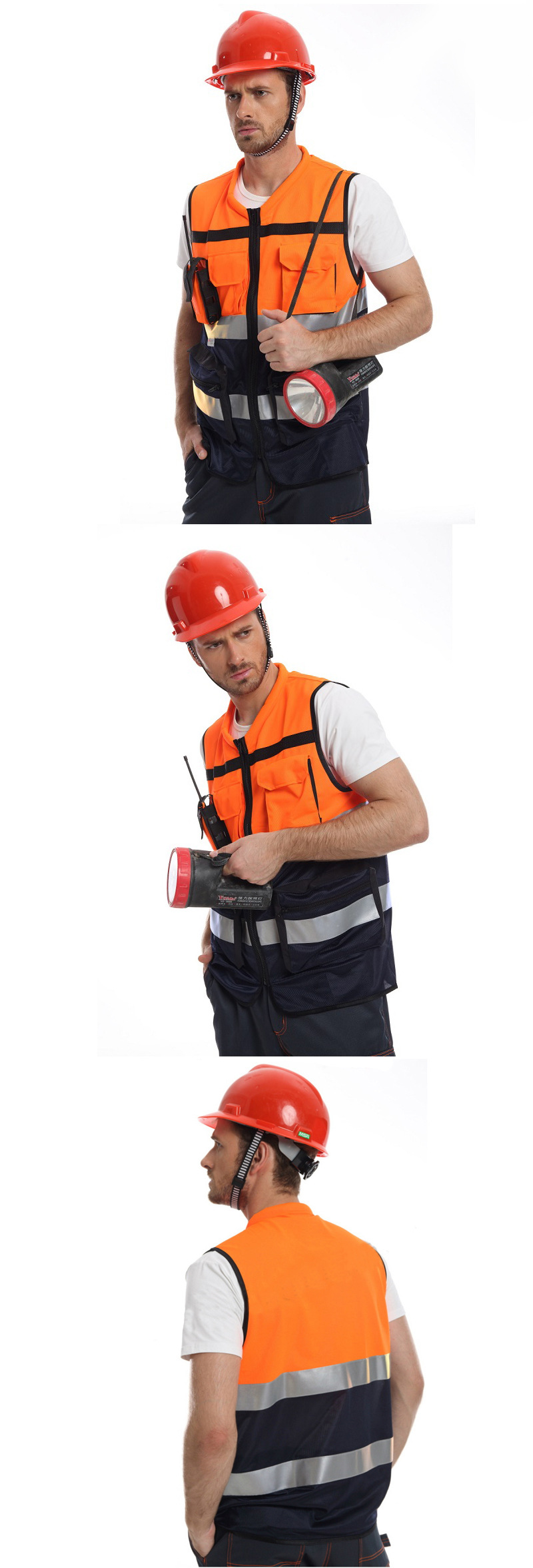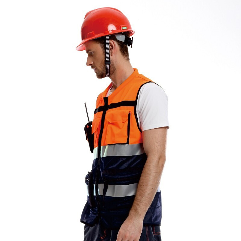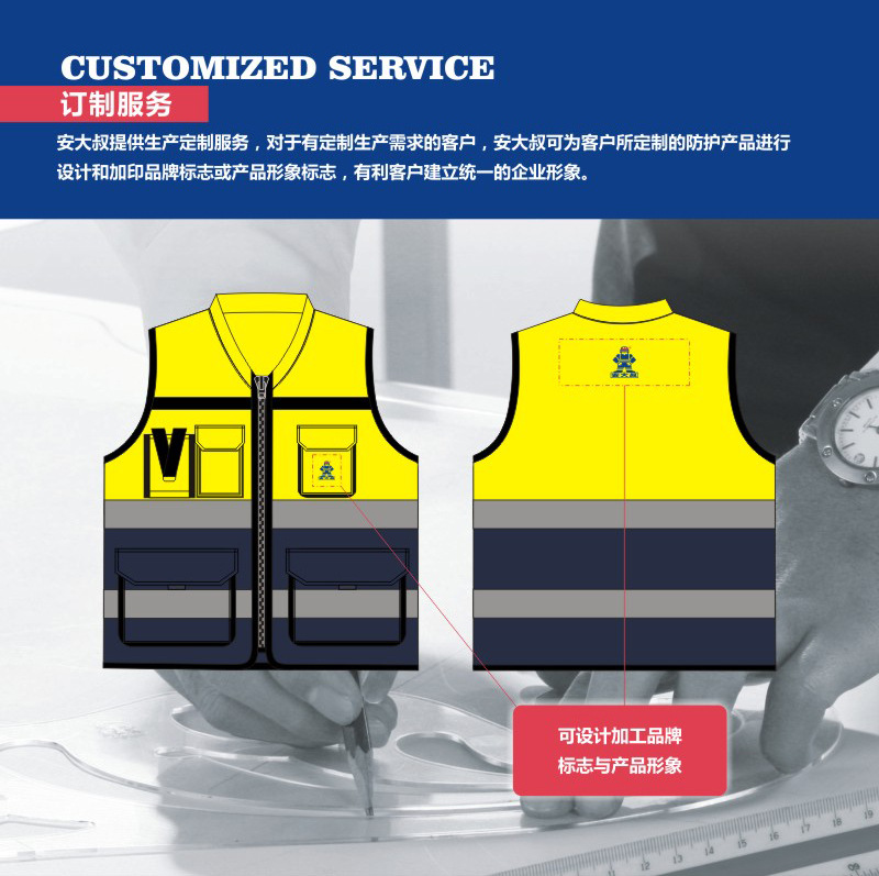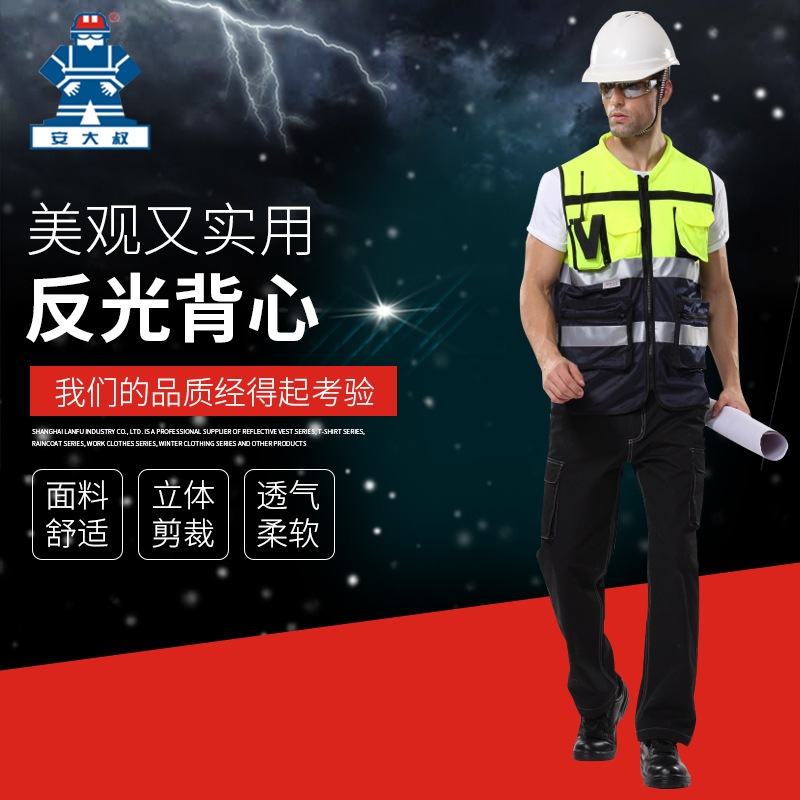 安大叔 A516Q 高警示多功能反光背心 荧光橙拼深蓝;
