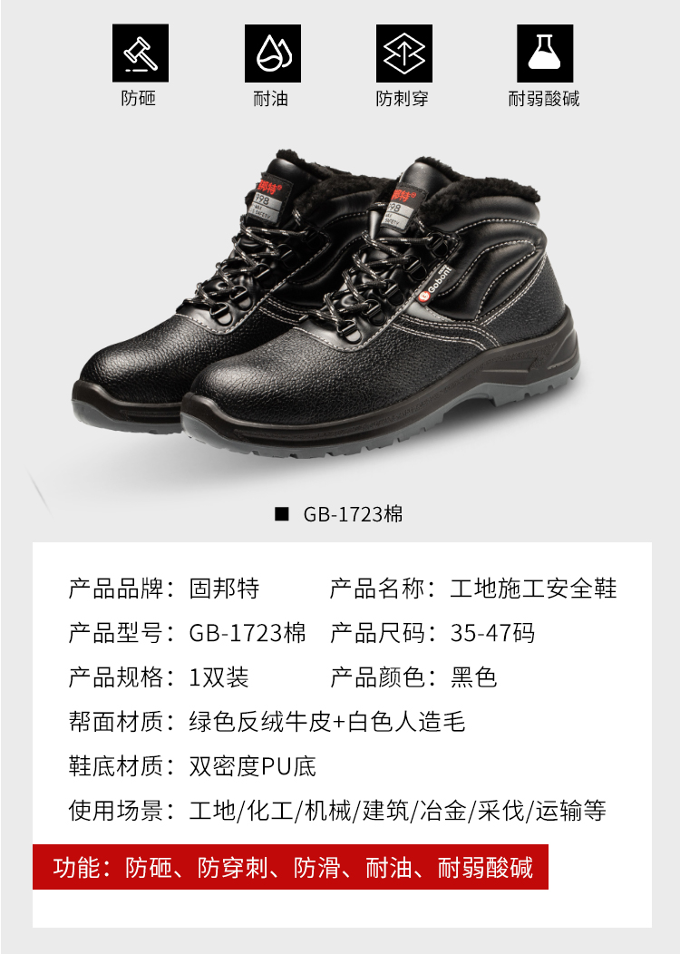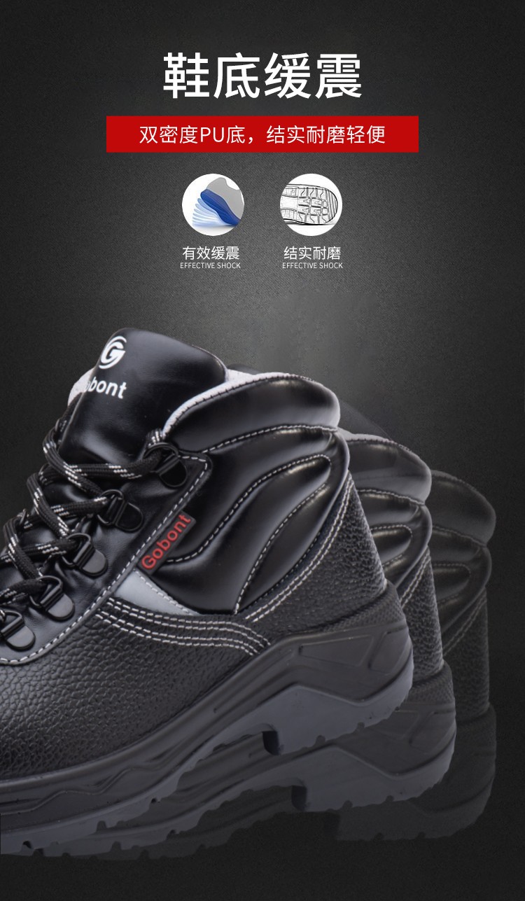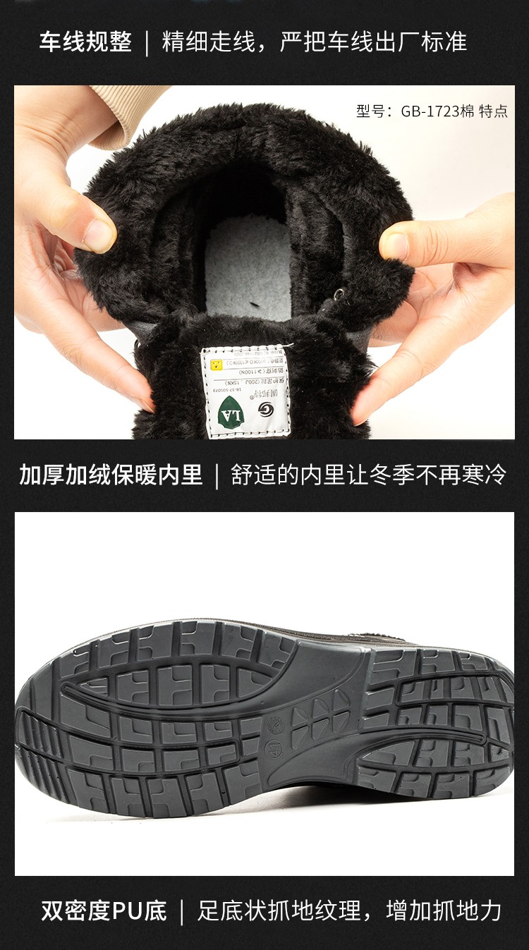 固邦 GB-1723棉 防砸防刺防滑保暖安全鞋 黒色;