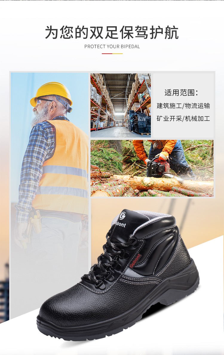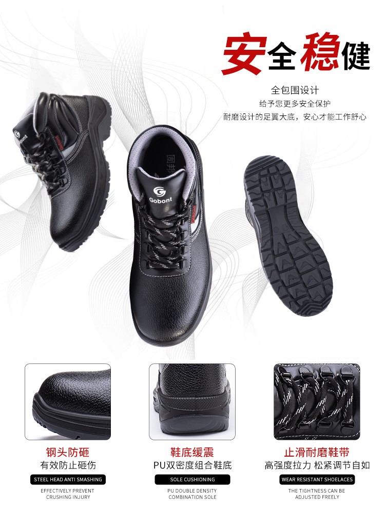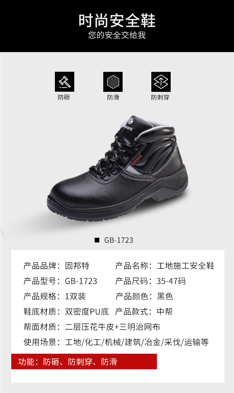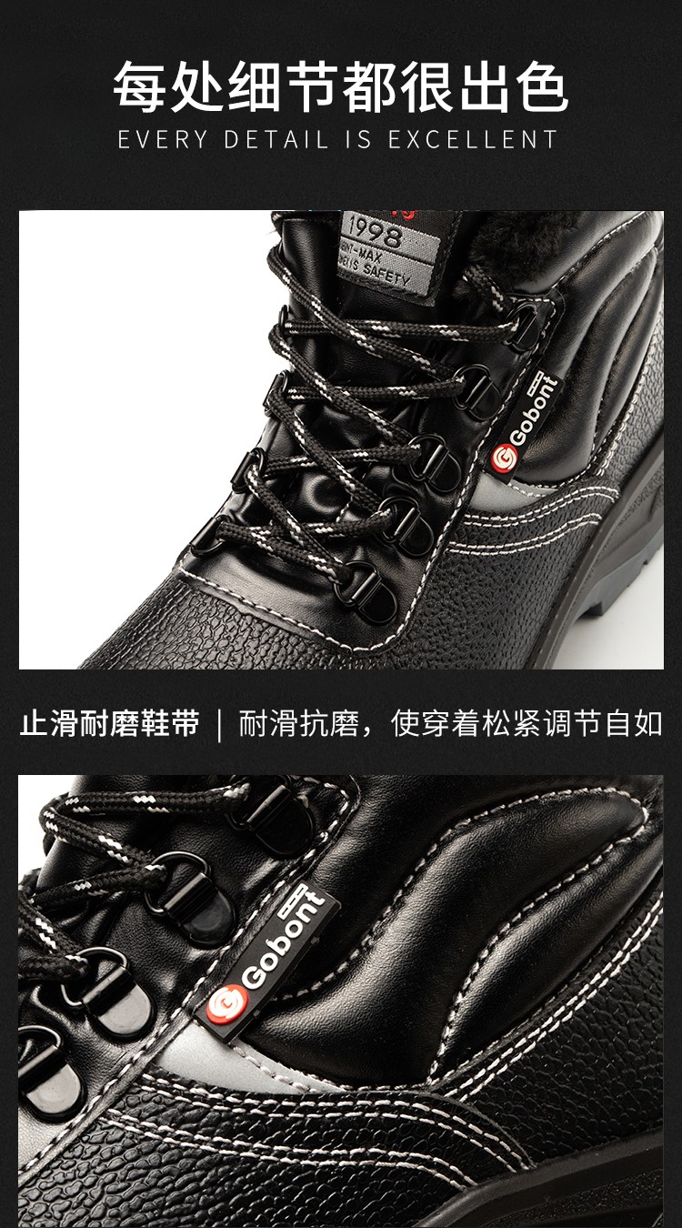 固邦 GB-1723棉 防砸防刺防滑保暖安全鞋 黒色;