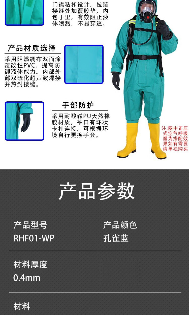 诺安 RHF 01-WP 外置式轻型防化服 孔雀蓝。