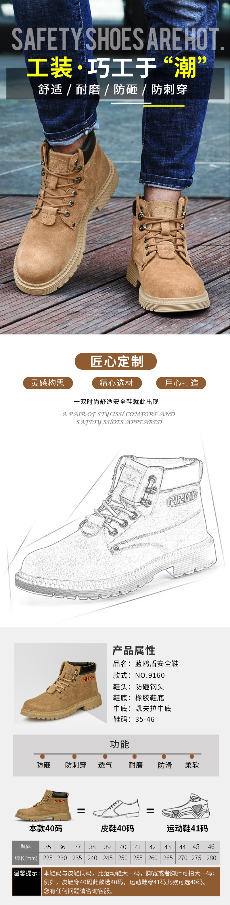 GUYISA 9160 防砸防穿刺安全鞋 卡其色;