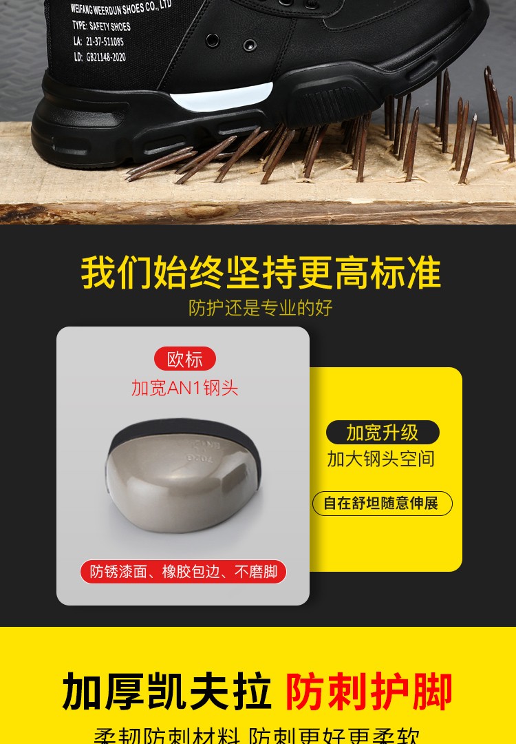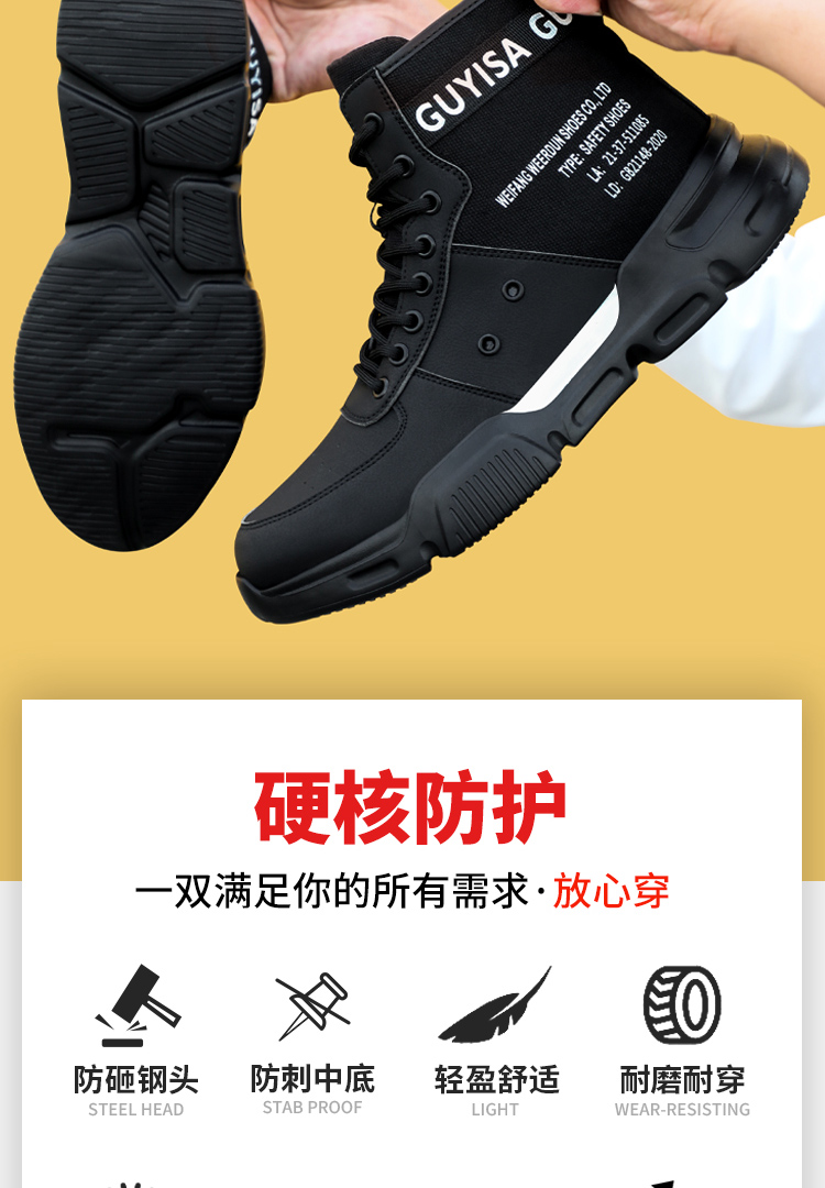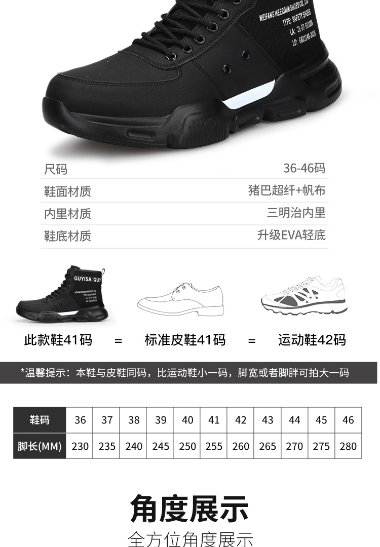 古伊萨 1099款 防砸防穿刺 安全鞋 黒色;