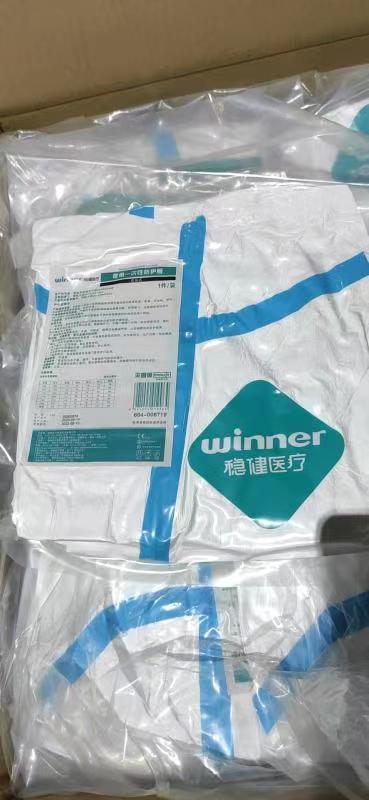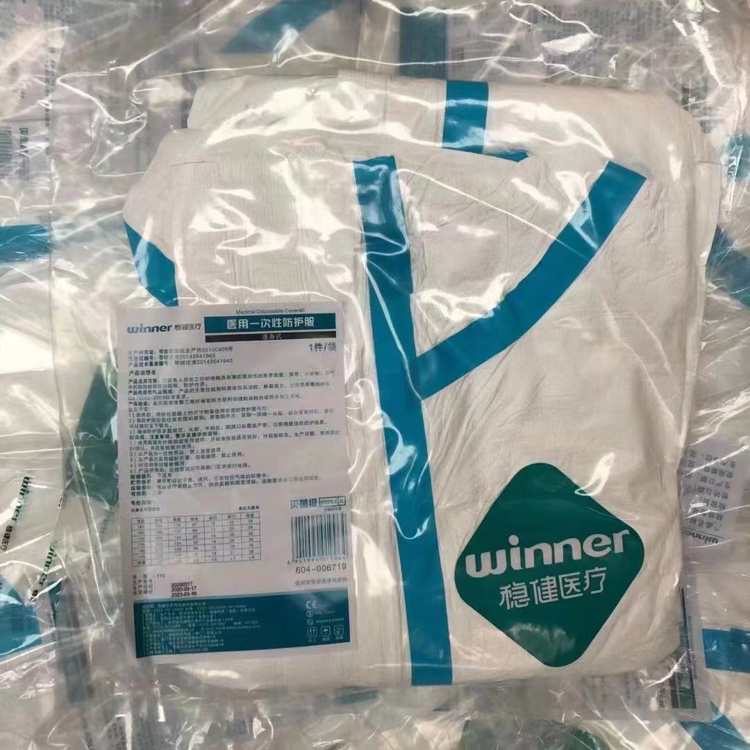 Winner稳健 604-006719-02 灭菌全塑医用一次性防护服连身式175带脚套(Tyvek1422A)。