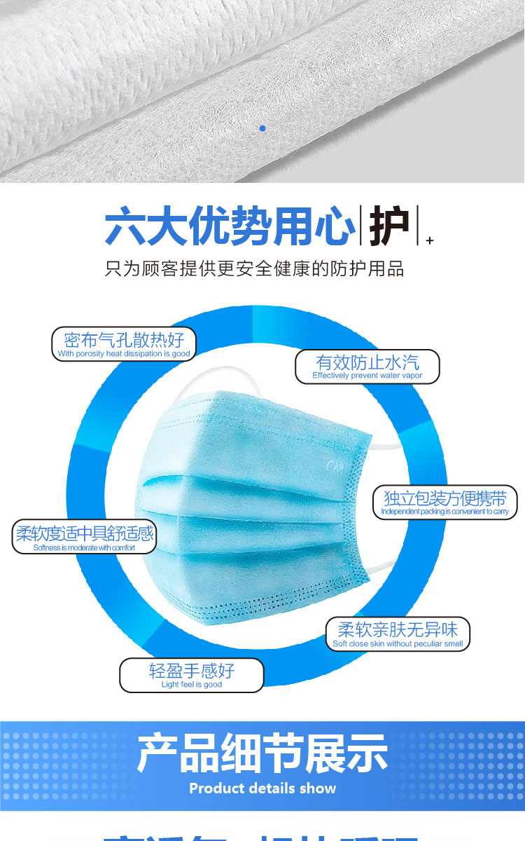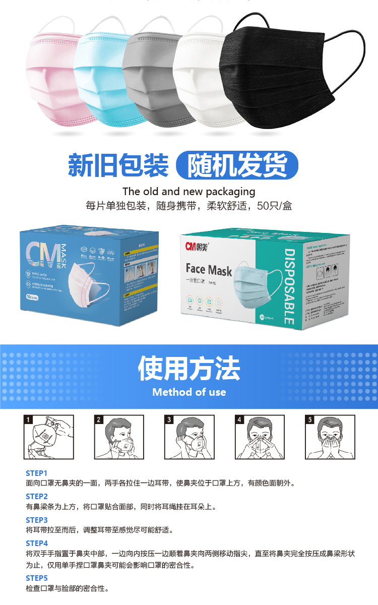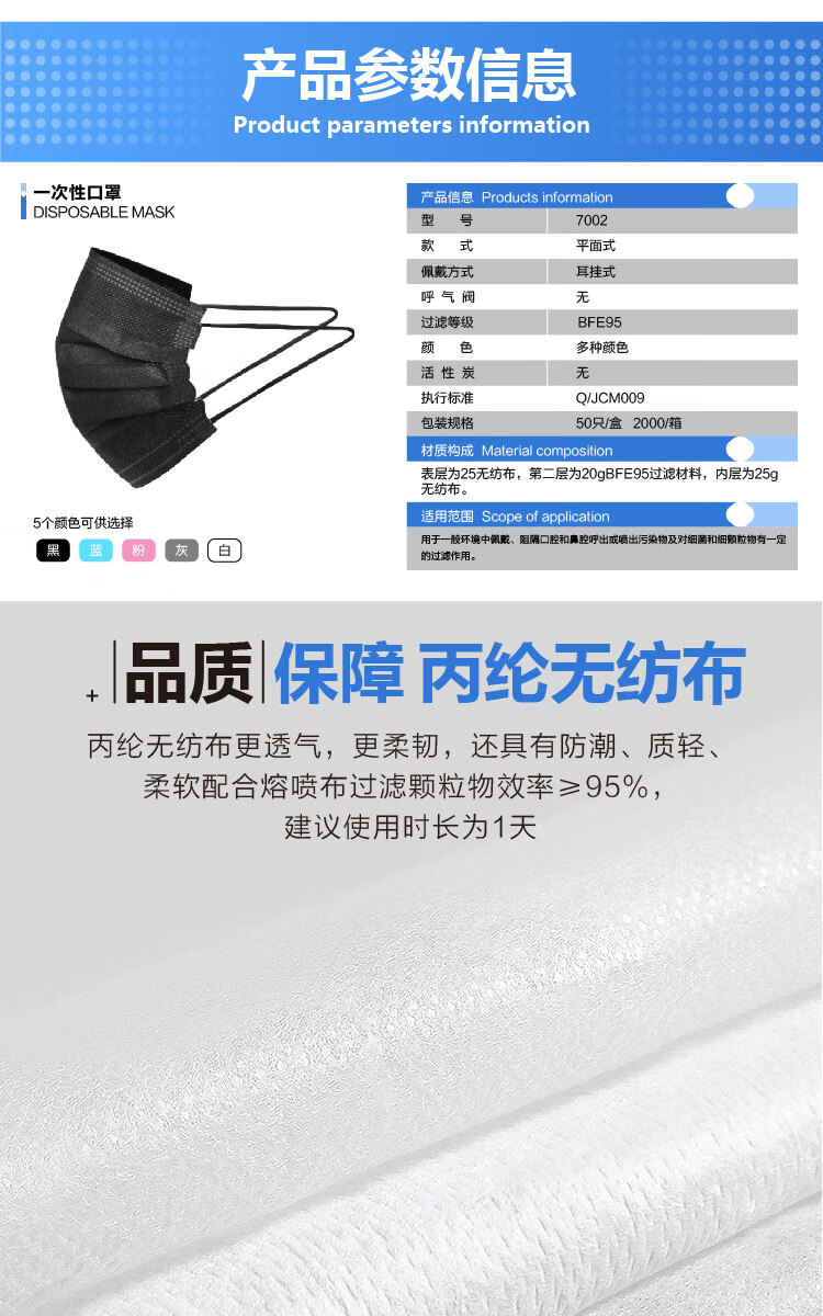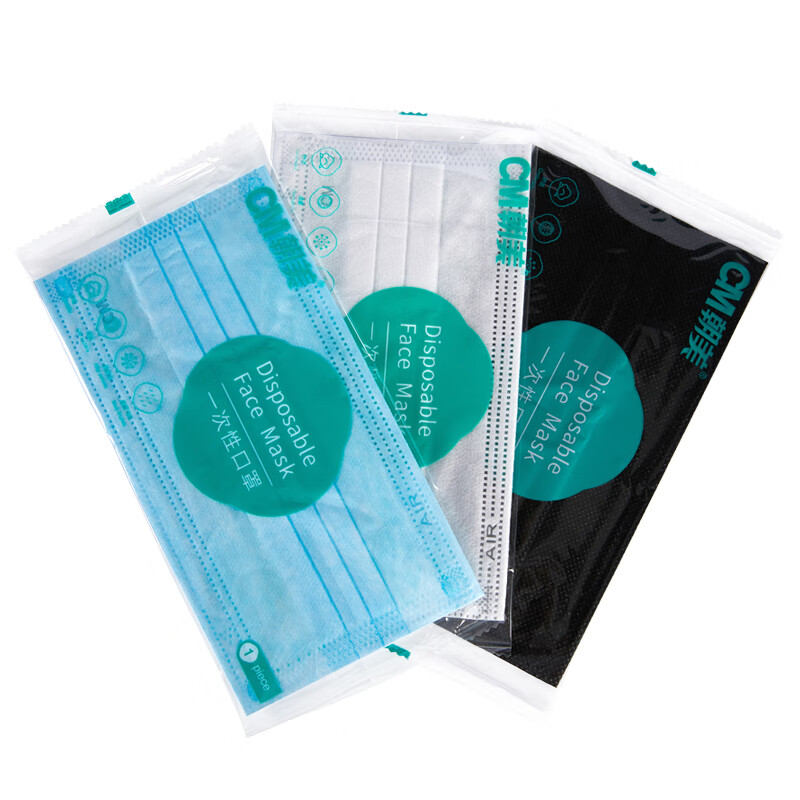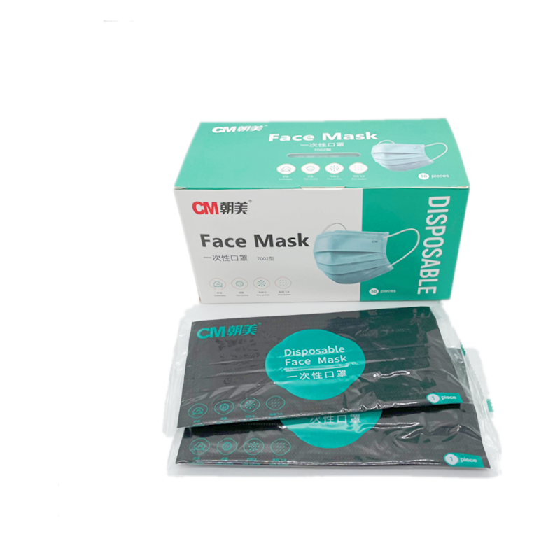 朝美7002 一次性三层平面口罩 耳戴式 黑色。