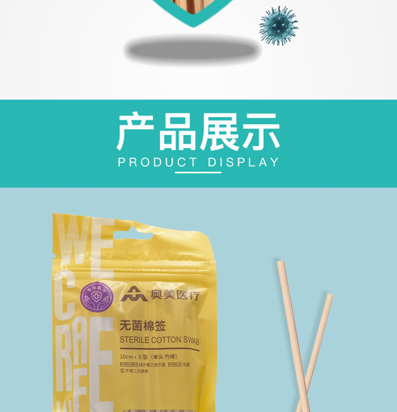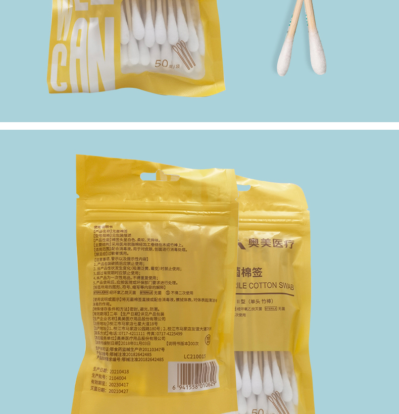 奥美医疗 LC210015 无菌棉签 10cm Ⅱ型(单头 竹棒)。