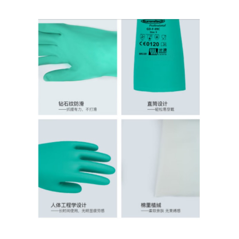 全面的防化性能,对甲醇 正庚烷 氢氧化钠 酸碱 等溶剂的防渗透性能等级达到2级以上(30分钟)适合沉浸操作;
