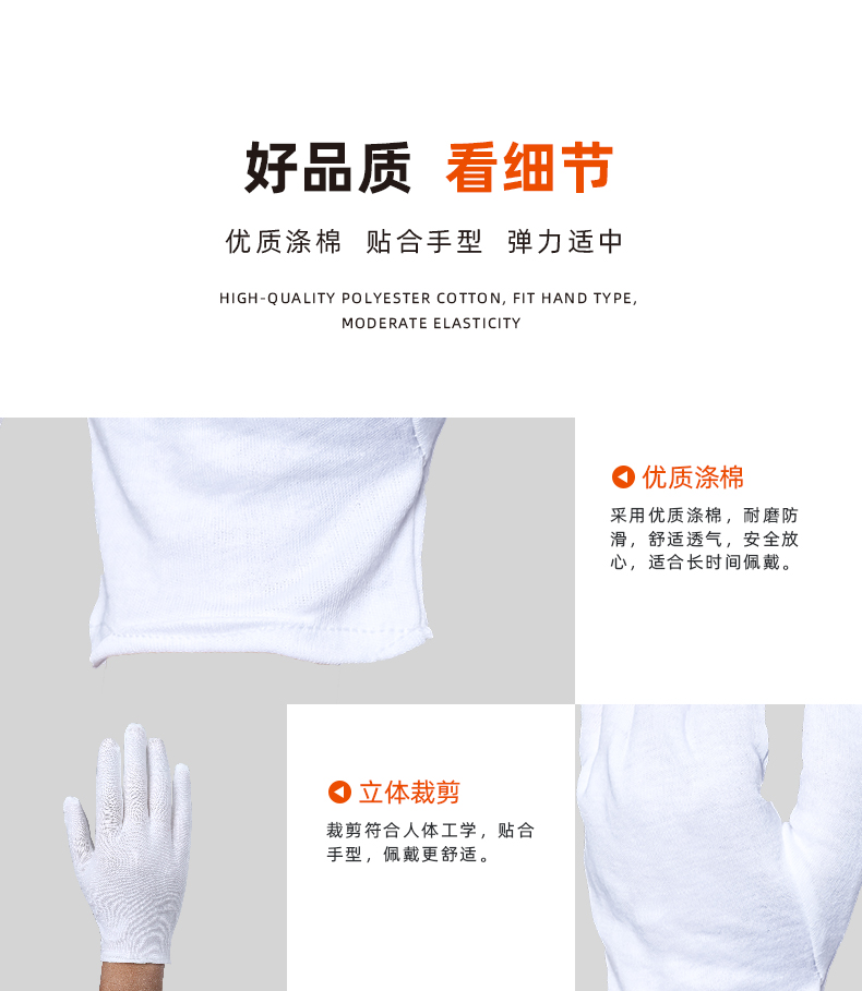 适合骑车防晒,礼仪活动,庆典跳舞指挥升旗合唱珠宝劳保等等 。
