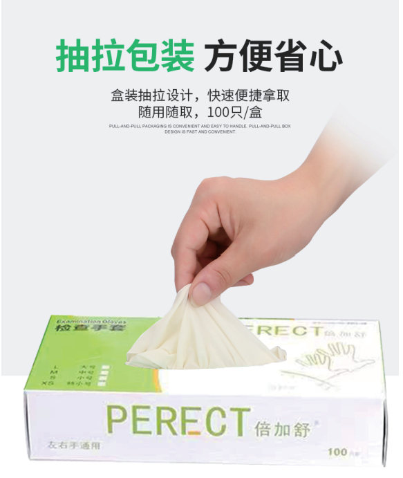 检查手套 (乳胶 耐用型) 医疗级 无粉 麻面 6克 长度230mm;