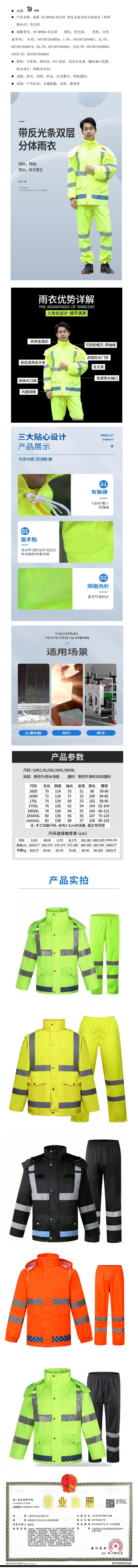 添盾 TD-BP604 带反光条双层雨衣 橙色