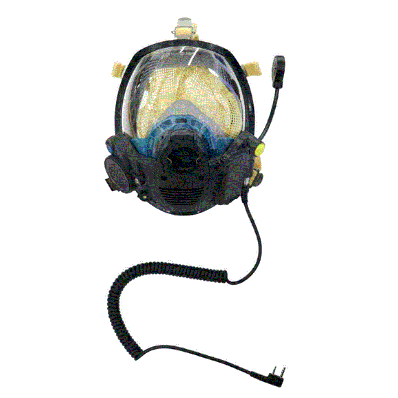 全面罩上装有系带和系带夹子,能使佩戴者脸部与双片状密封环相贴合,保护安全可靠的气密性。头罩呈网状,以四点支撑方式与面窗连接,为其提供了十分舒适方便的感觉,宽紧带可调节面罩佩戴松紧,面窗内的语音振膜可使佩戴者有清晰的通讯效果。