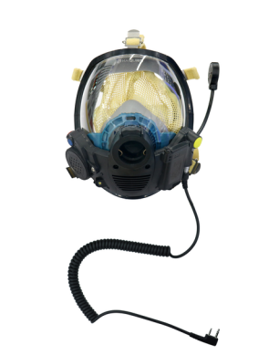全面罩上装有系带和系带夹子,能使佩戴者脸部与双片状密封环相贴合,保护安全可靠的气密性。头罩呈网状,以四点支撑方式与面窗连接,为其提供了十分舒适方便的感觉,宽紧带可调节面罩佩戴松紧,面窗内的语音振膜可使佩戴者有清晰的通讯效果。