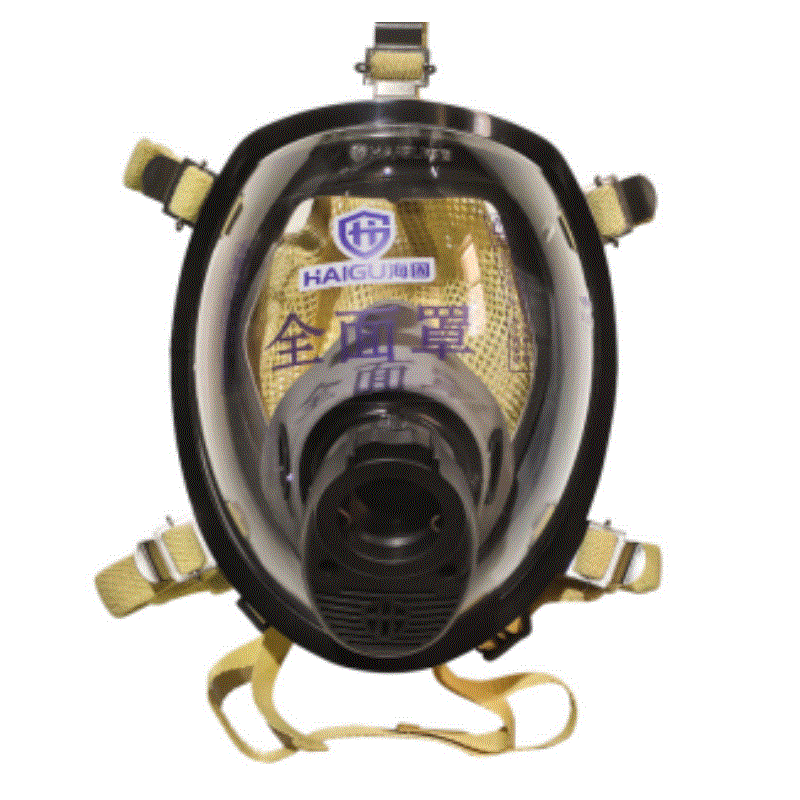 全面罩上装有系带和系带夹子,能使佩戴者脸部与双片状密封环相贴合,保护安全可靠的气密性。头罩呈网状,以四点支撑方式与面窗连接,为其提供了十分舒适方便的感觉,宽紧带可调节面罩佩戴松紧,面窗内的语音振膜可使佩戴者有清晰的通讯效果。