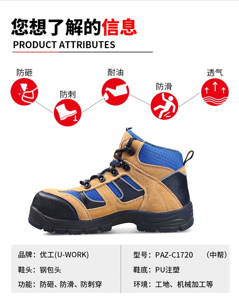优工 PAZ-C1720 防砸防刺安全鞋;