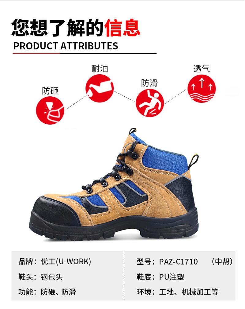 优工 PAZ-C1710 防砸安全鞋;
