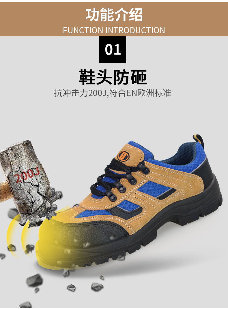 鞋头防砸,抗冲击200J,符合EN欧洲标准;