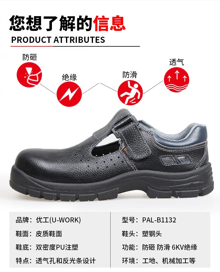 优工 PAL-B1132 防砸6kv电绝缘安全凉鞋;