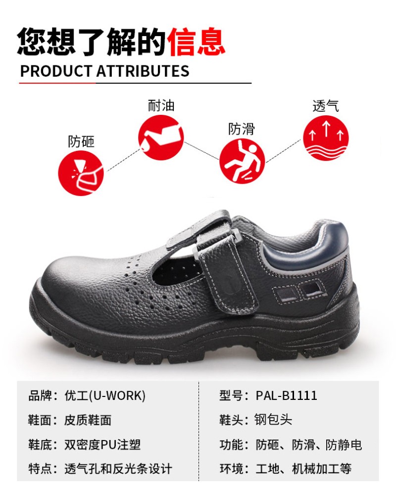 优工 PAL-B1111 防砸防静电安全凉鞋;