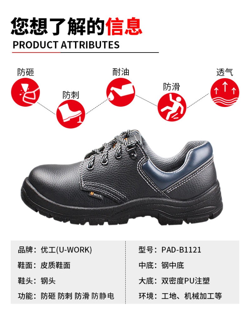 优工 PAD-B1121 防砸防刺防静电安全鞋;