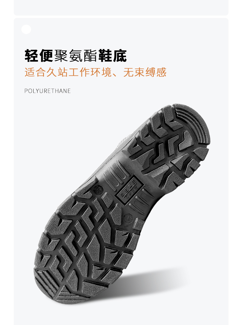 轻便聚氨酯鞋底,适合久站工作环境,无束缚感。
