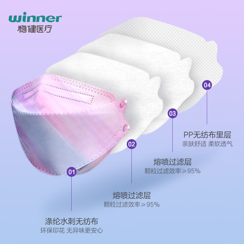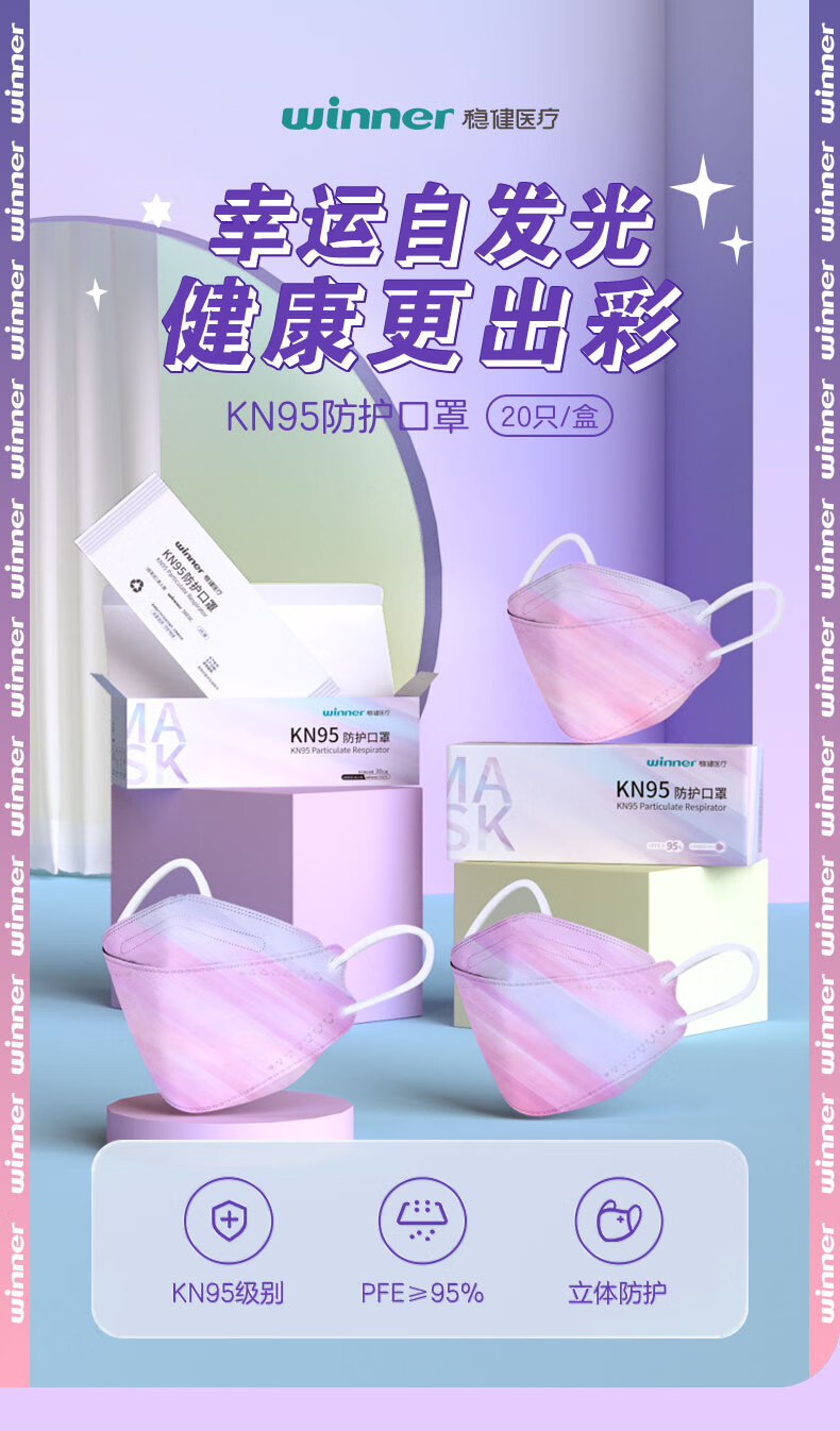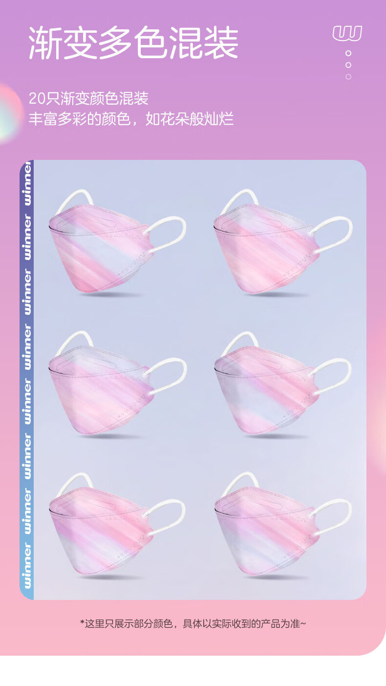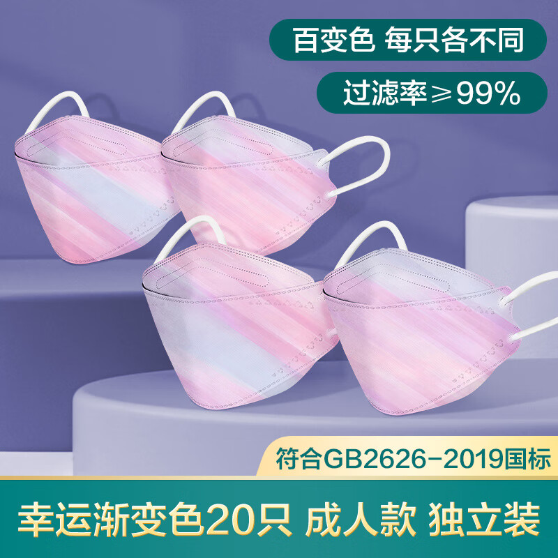 稳健 (电商)普通纸糖果渐变色KN95颗粒物防护口罩成人鱼嘴形 防护口罩 。