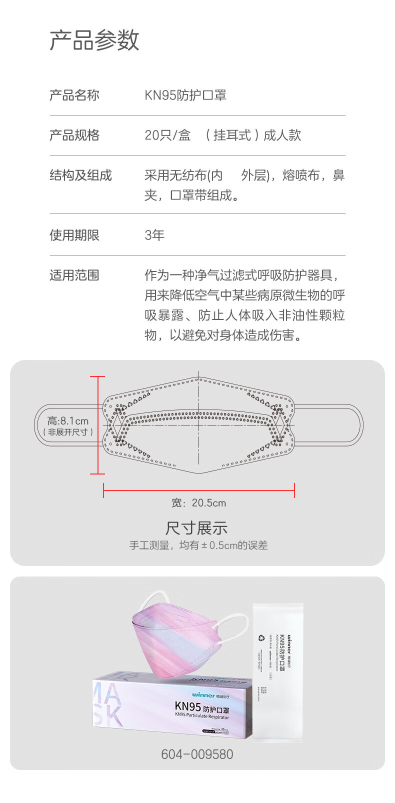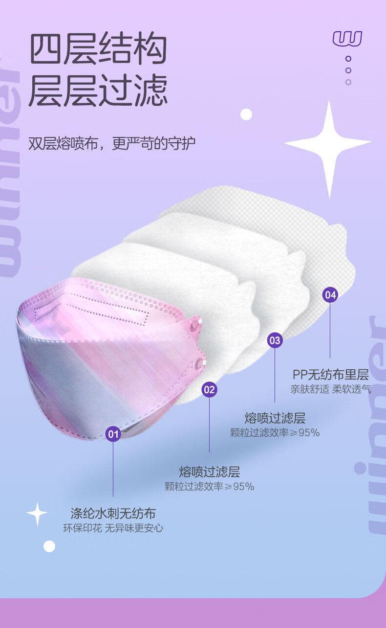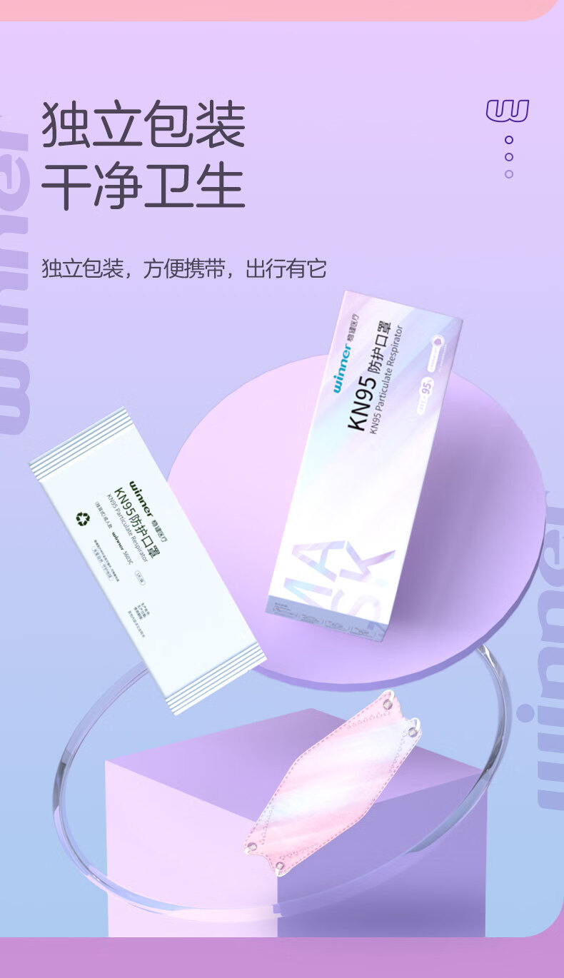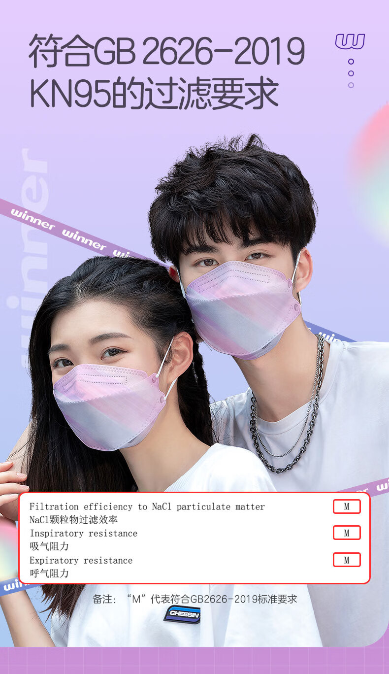 稳健 (电商)普通纸糖果渐变色KN95颗粒物防护口罩成人鱼嘴形 防护口罩 。