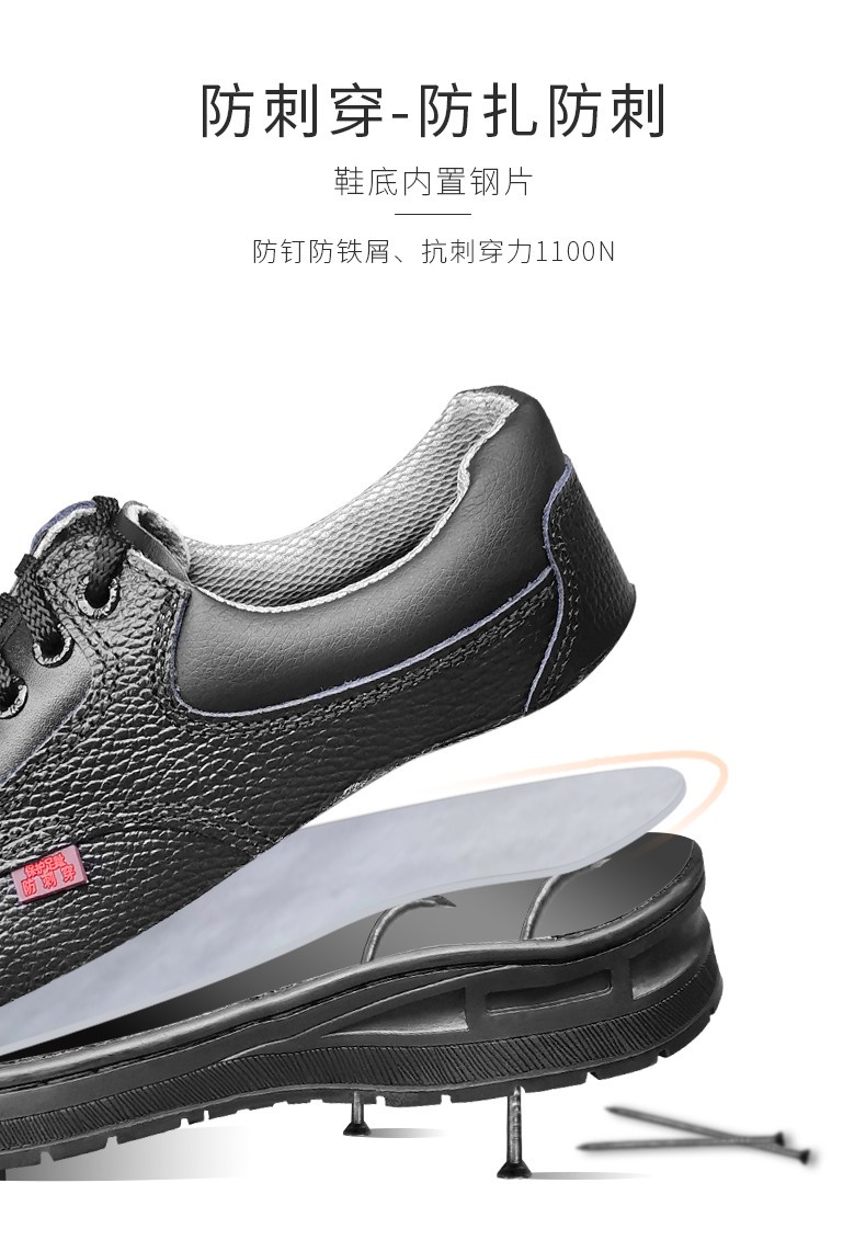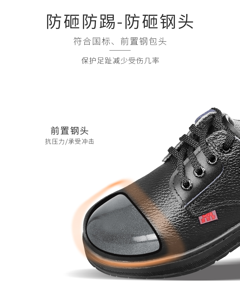 防砸防踢,防砸钢头,符合国标,前置钢包头,保护足趾;