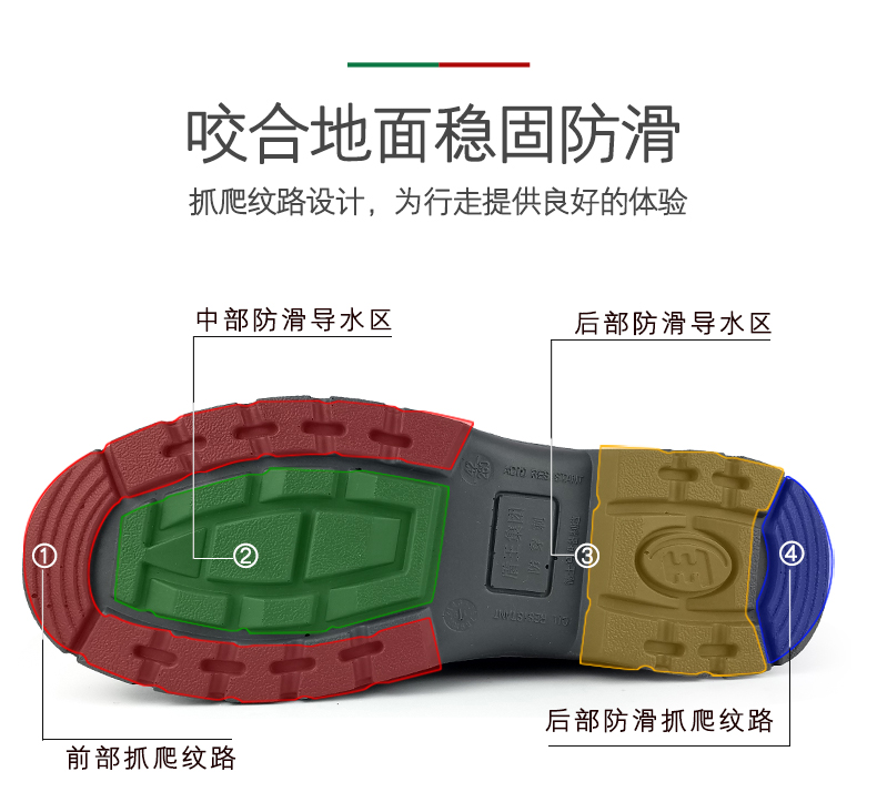 鞋底抓爬纹路设计,为行走提供良好的体验。
