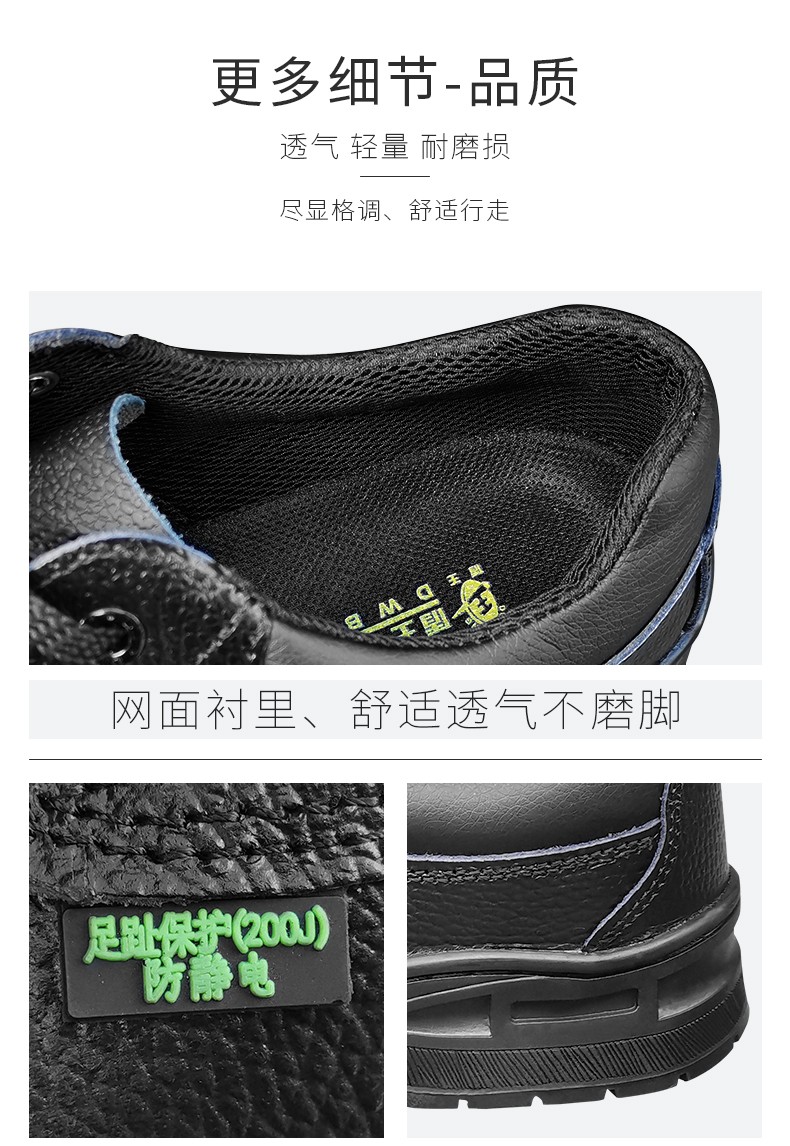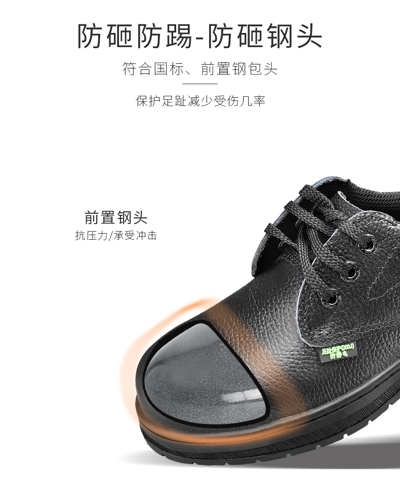 防砸防踢,防砸钢头,符合国标,前置钢包头,保护足趾;