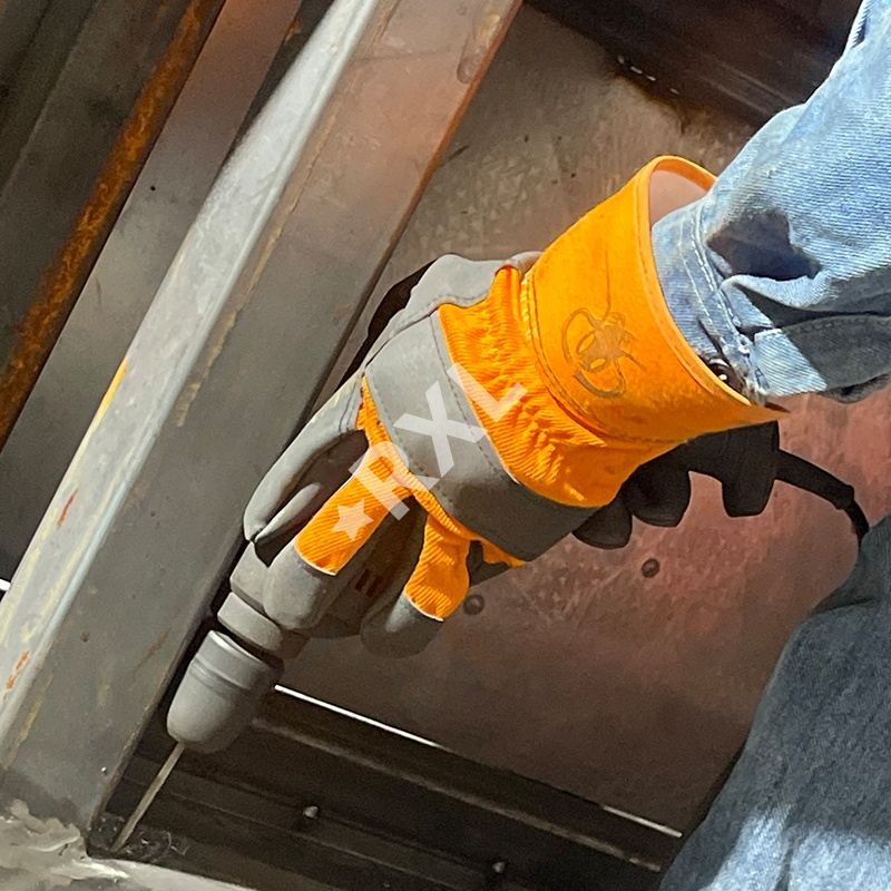 产品详情:手掌采用柔软舒适的黑色超纤皮,能更耐脏应对恶劣的工作环境,更具耐磨 防刺 贴手功能,背部橙色棉布拉暗橡筋,让您工作灵活自如,手袖采用耐磨防刺PVC夹胶袖,轻便不易变形。不会束缚你的手腕,穿戴自如。