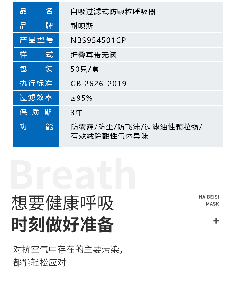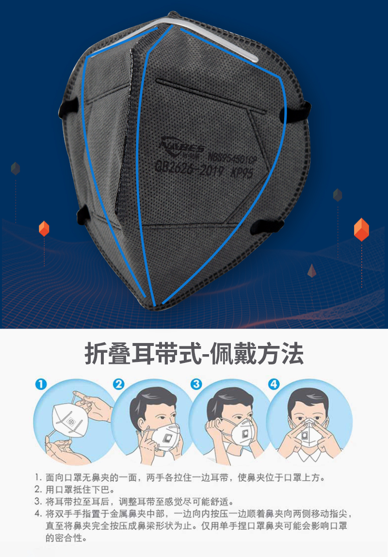 耐呗斯NBS954501CP折叠耳带无阀防酸口罩(舒适款);