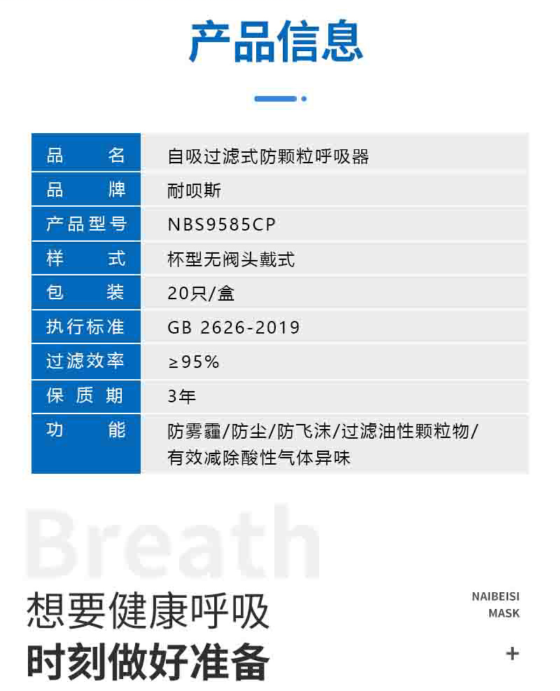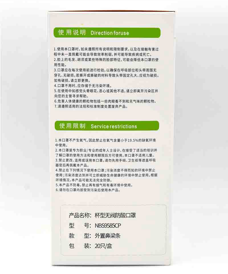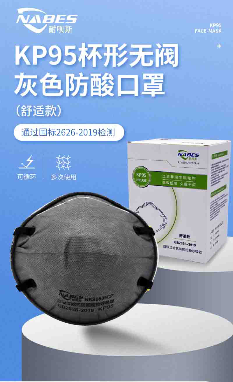 耐呗斯NBS9585CP杯形无阀防酸口罩(舒适款);