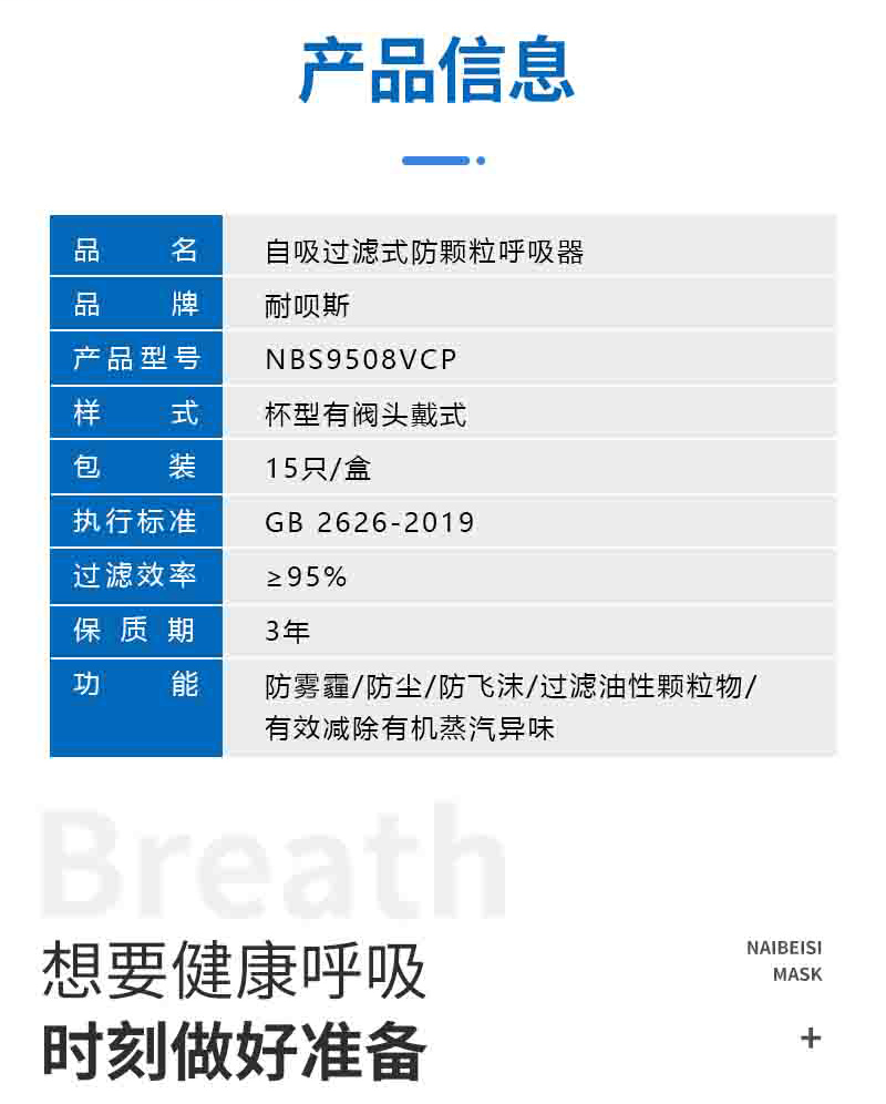 耐呗斯NBS9508VCP杯形有阀防有机口罩(舒适款);