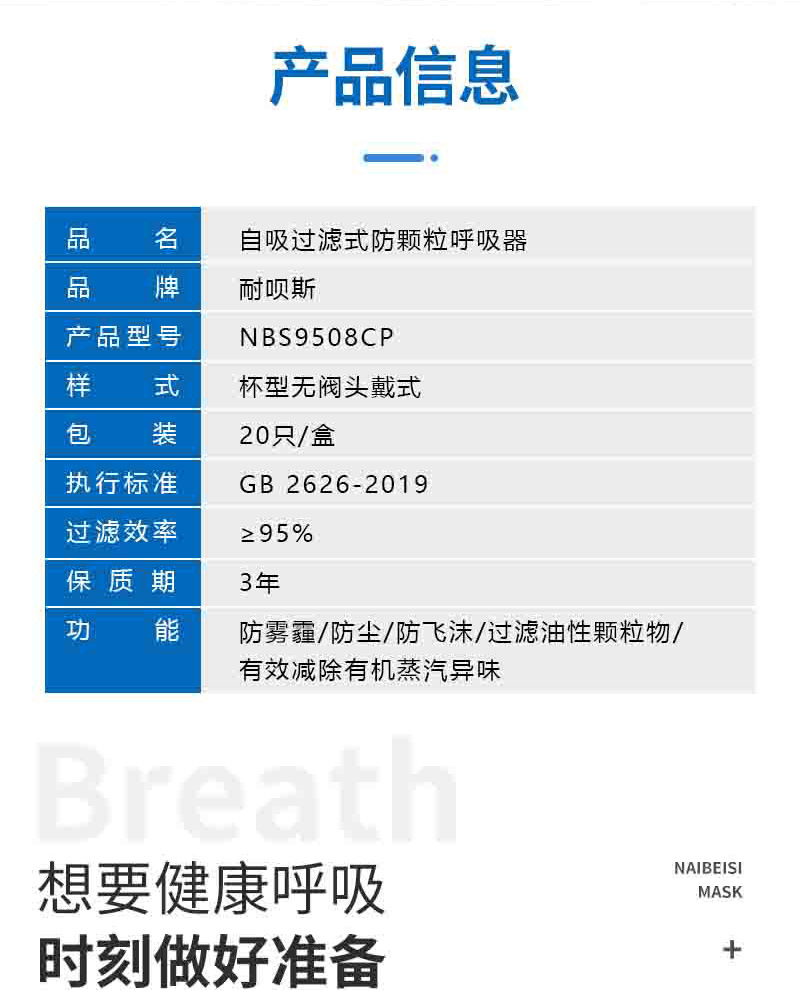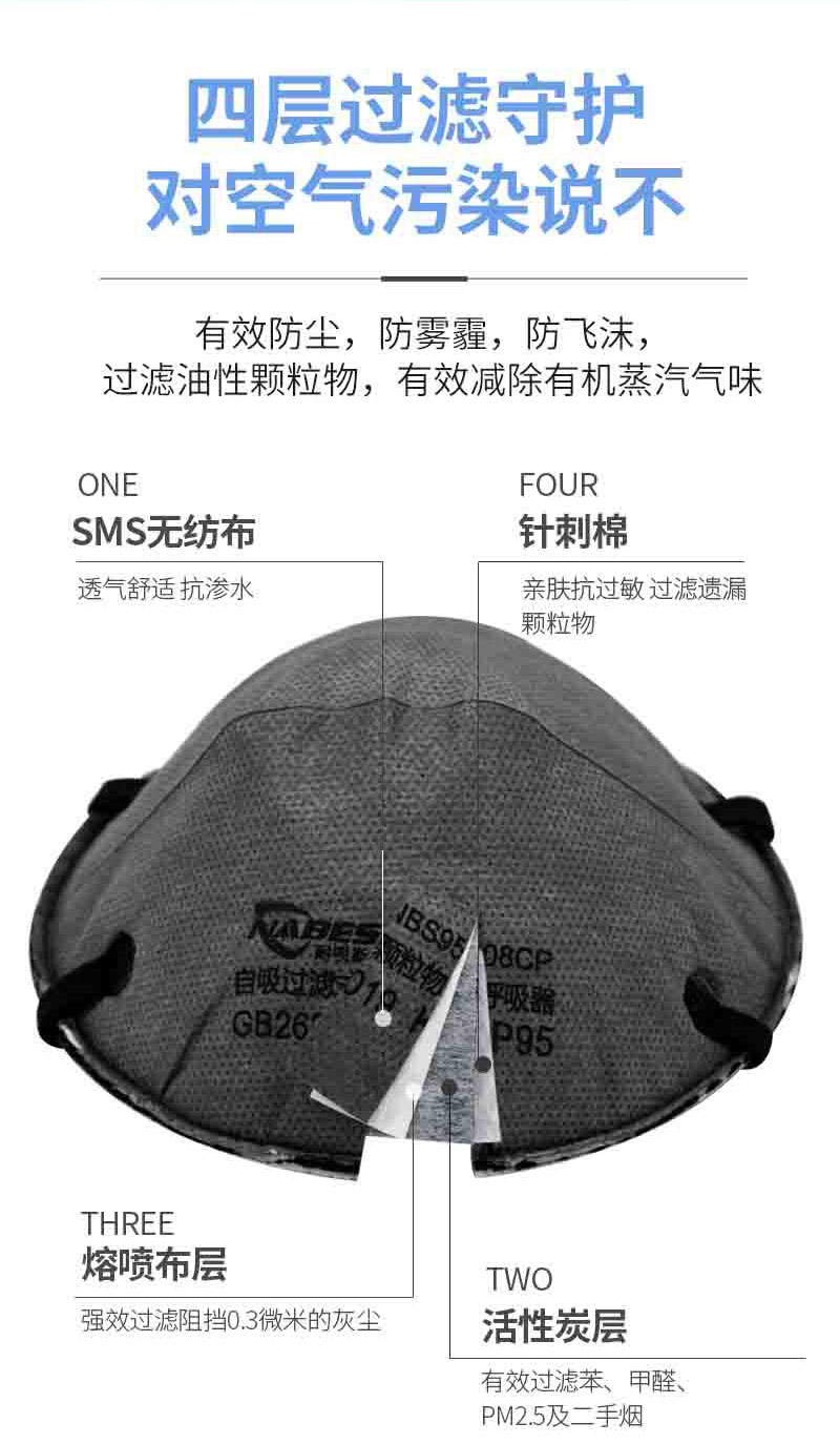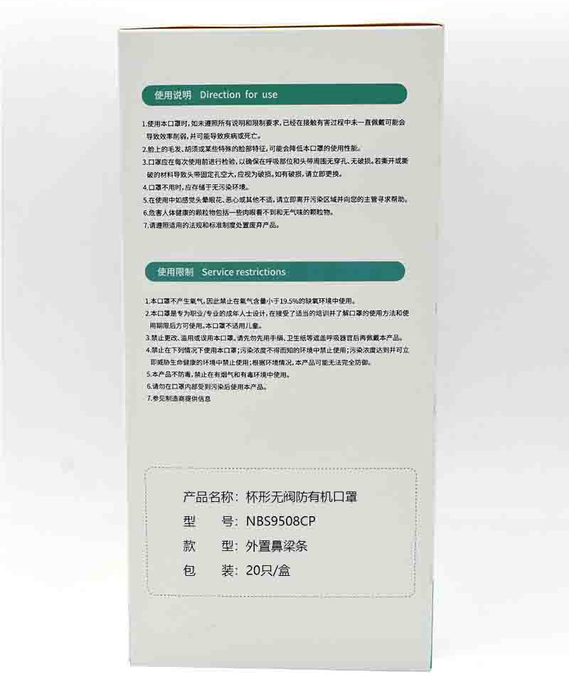 耐呗斯NBS9508CP杯形无阀防有机口罩(舒适款);