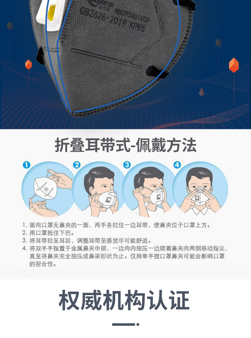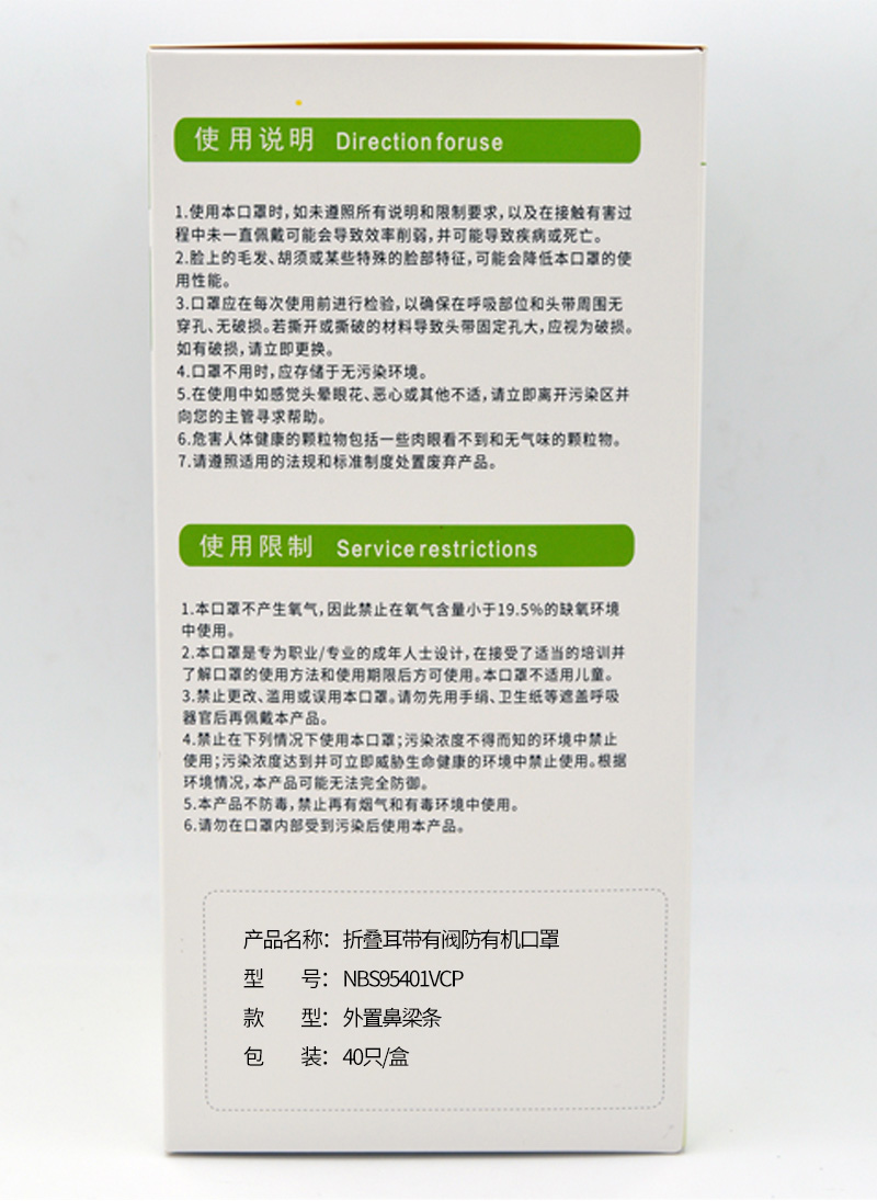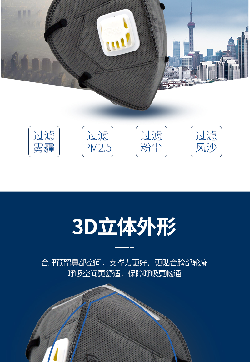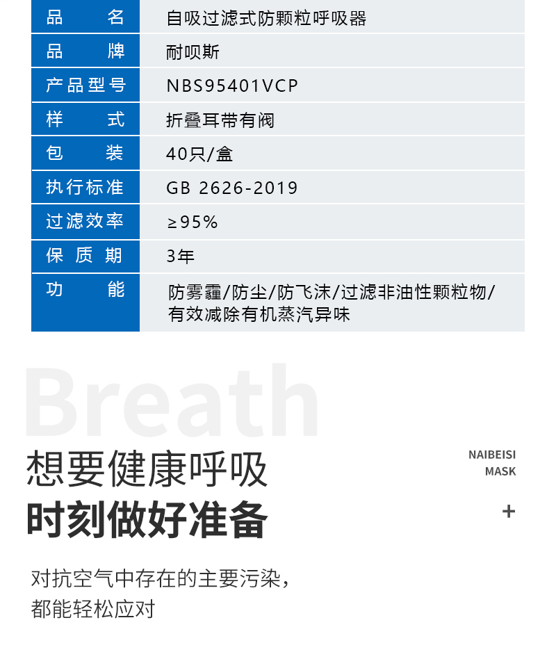耐呗斯NBS95401VCP折叠耳带有阀防有机口罩(舒适款);