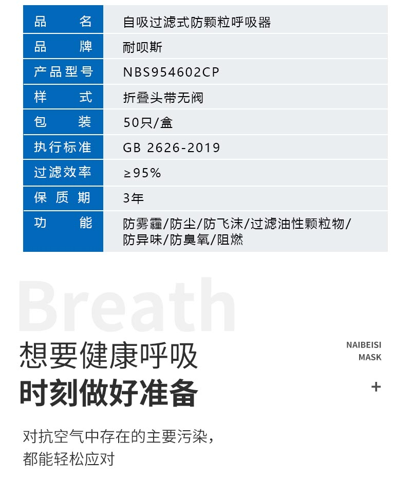 耐呗斯NBS954602CP折叠头带无阀焊接口罩(舒适款);